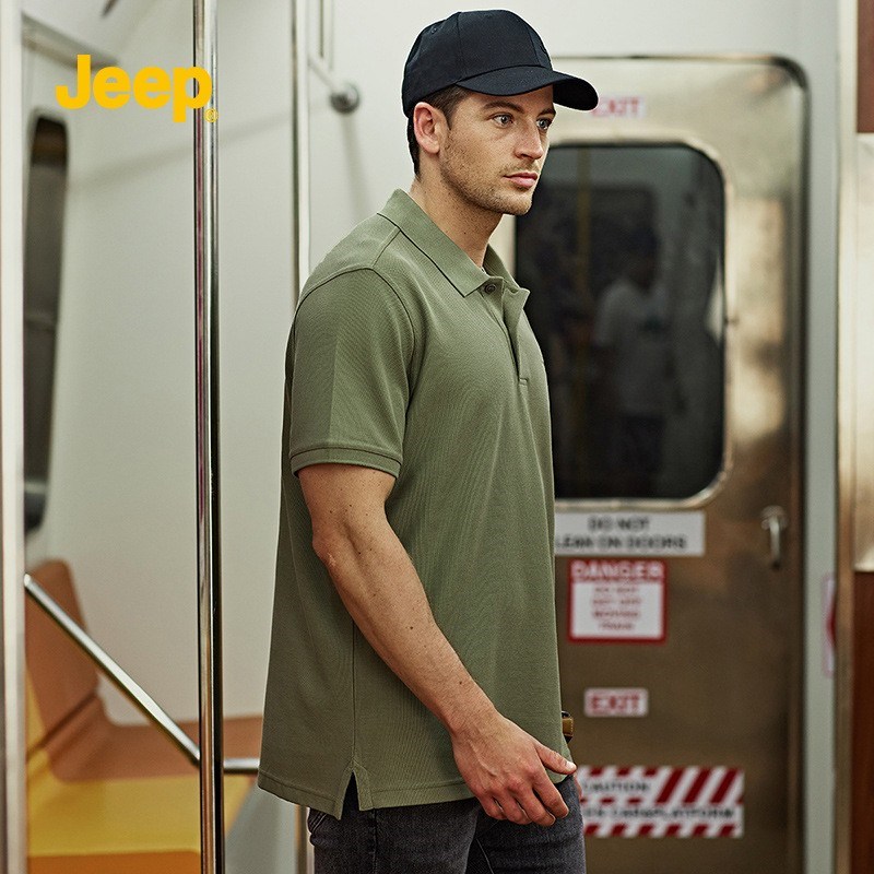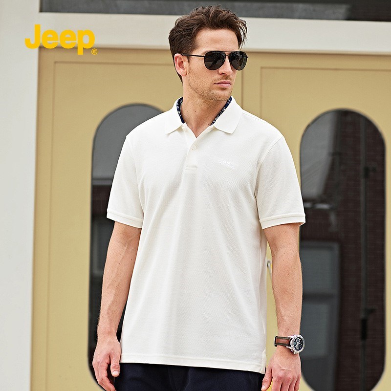 JEEP 夏季新款翻领休闲款式白色棉青年纯色T恤P212MKT179