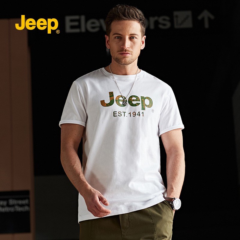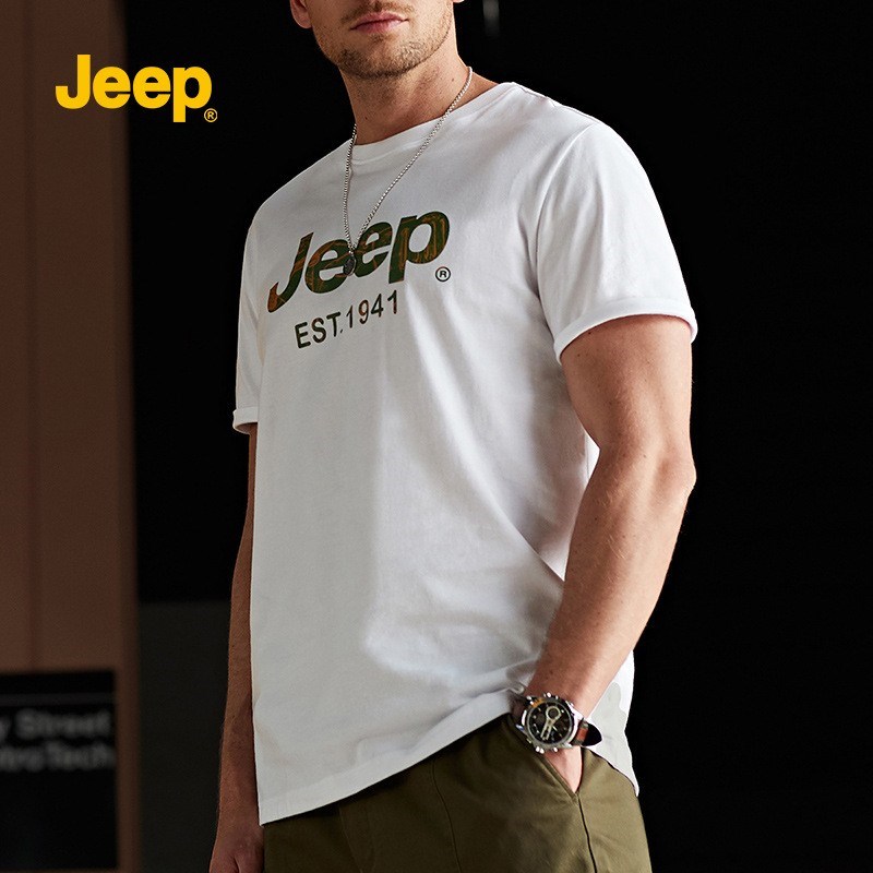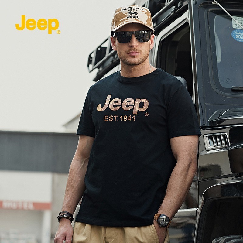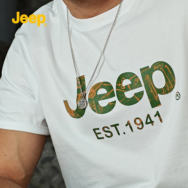 JEEP 夏季新款纯色圆领字母休闲棉薄款短袖T恤P212MKT054