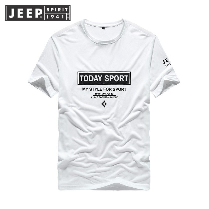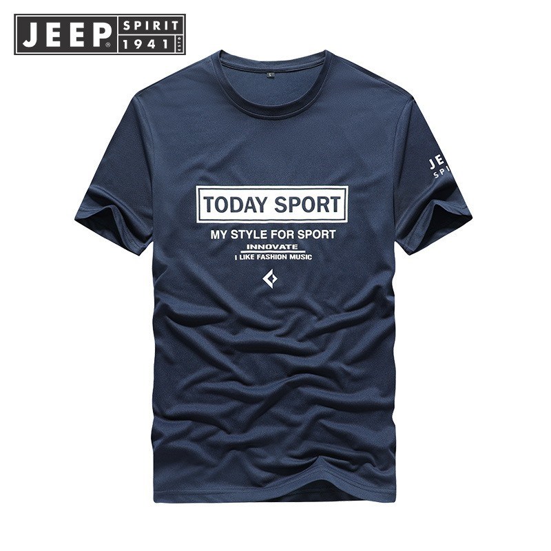JEEP SPIRIT夏季新款不连帽字母青年宽松型无领薄款休闲色t恤218705