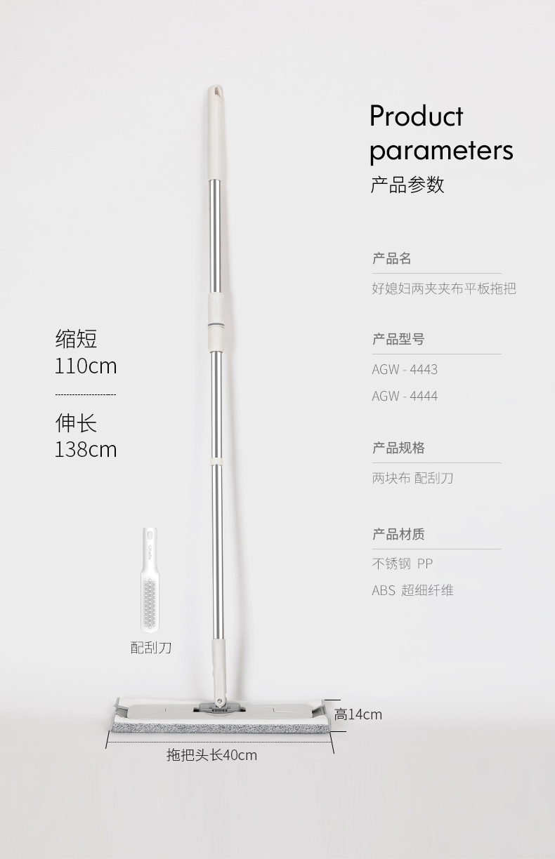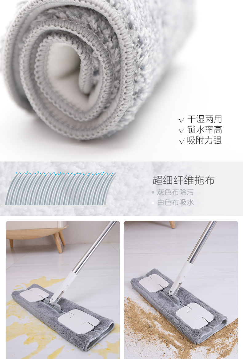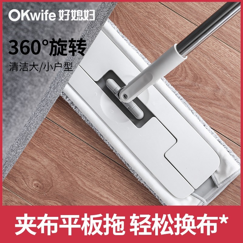 好媳妇(okaywife) 家用拖布擦木地板托把瓷砖夹毛巾墩布平拖地拖 两夹夹平布拖(2块布)AGW4443