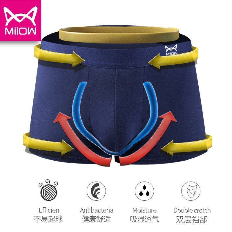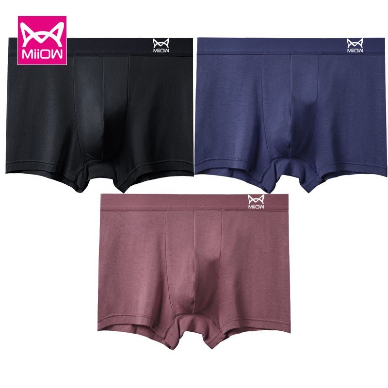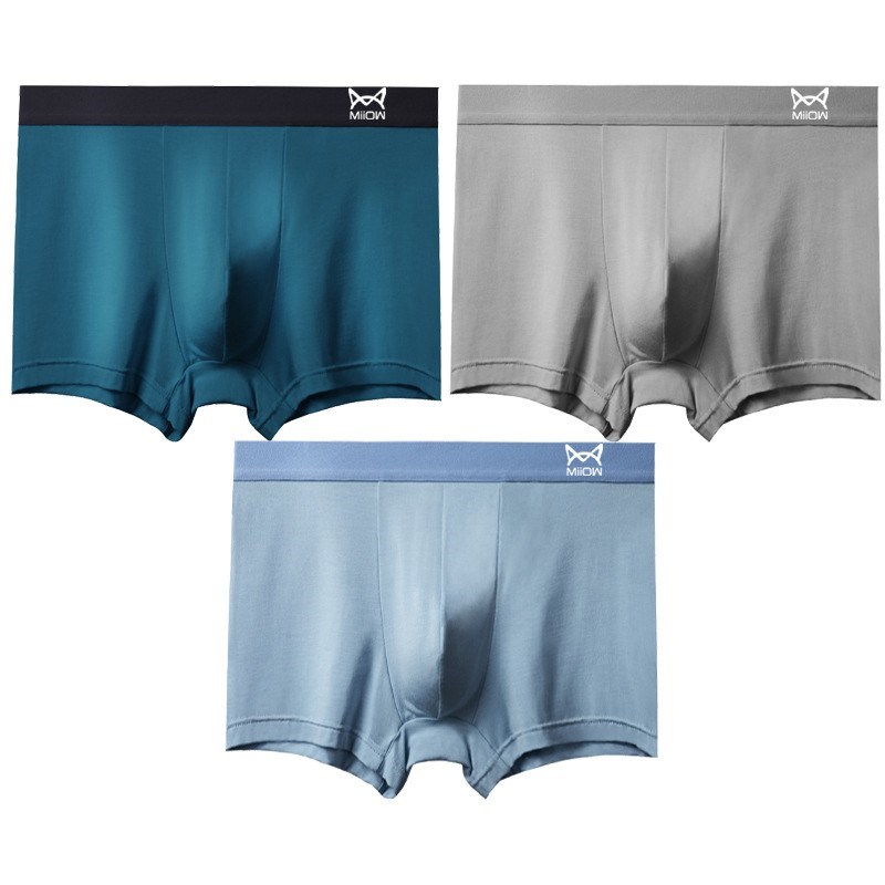 MiiOW/猫人男士内裤再生纤维素纤维抗菌纯色平角裤柔软舒适四角裤1954