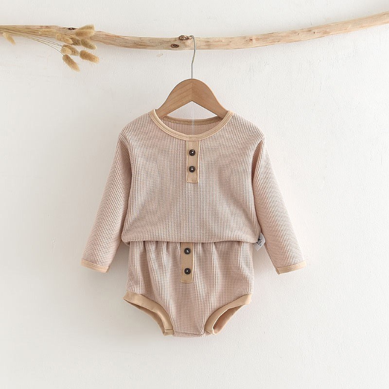 婴童套装春款男女宝宝棉布套装长袖卫衣+短裤婴儿家居服AH4537
