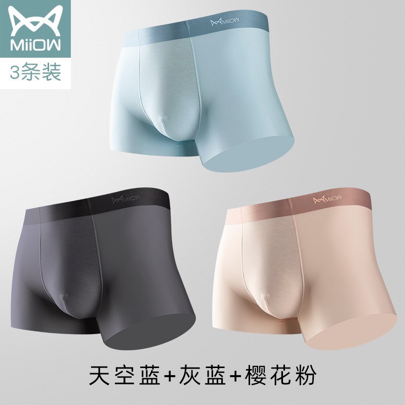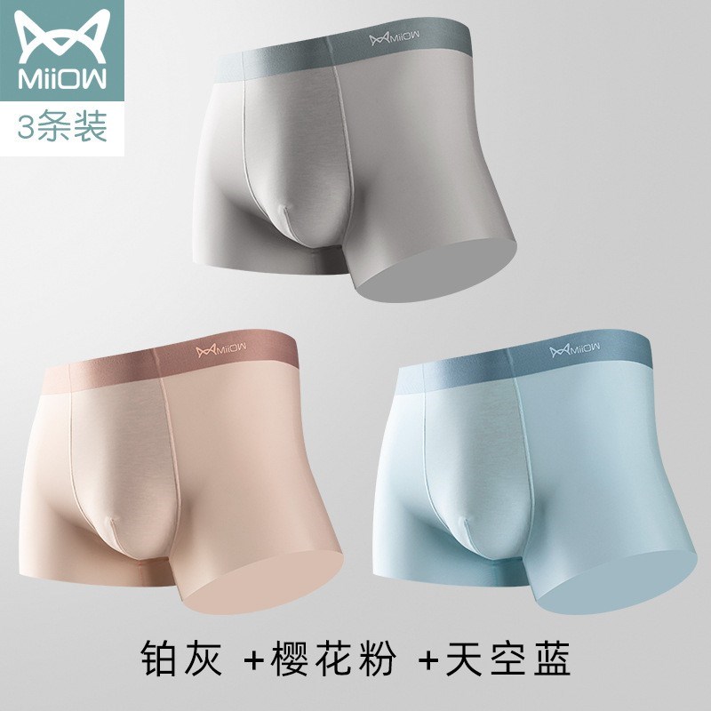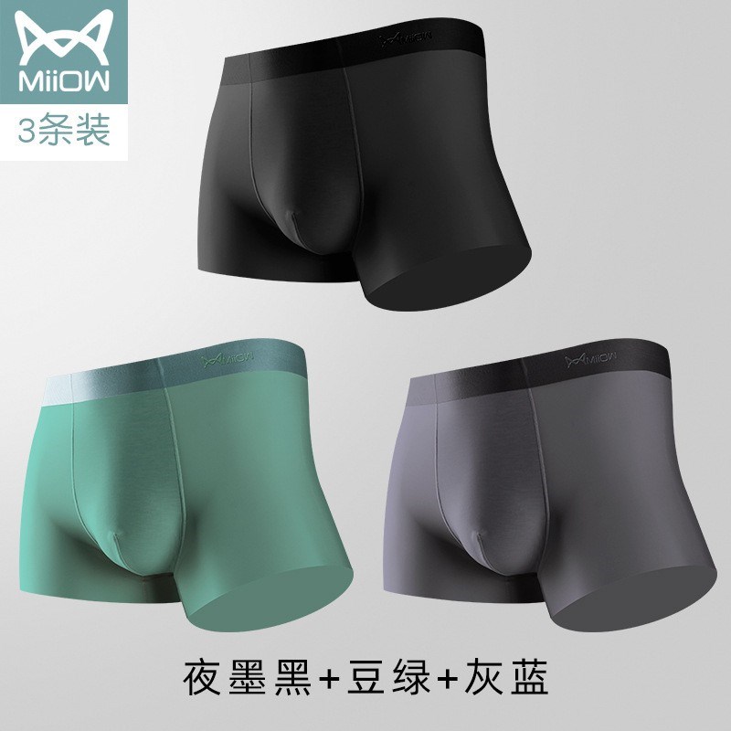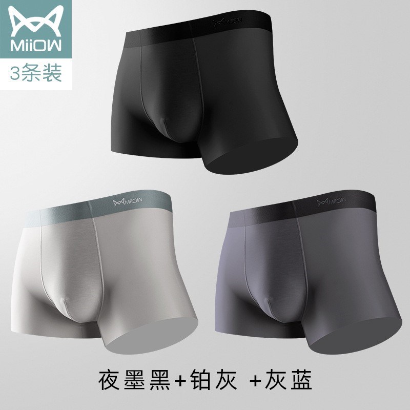 MiiOW/猫人3条装男士内裤冰丝无痕石墨烯抗菌平角裤JC89801
