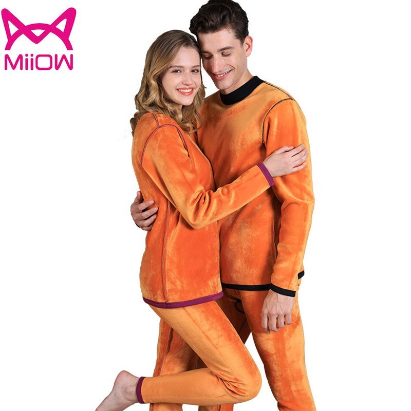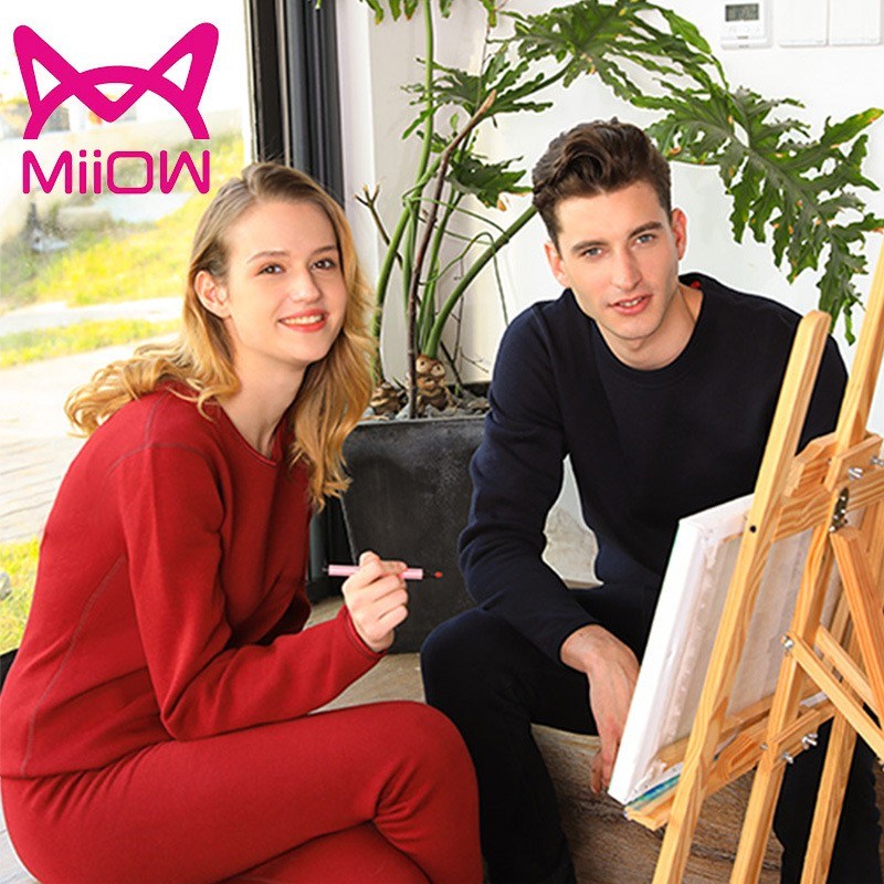 MiiOW/猫人加绒加厚立体裁剪秋衣秋裤情侣款秋冬修身保暖打底套装M831
