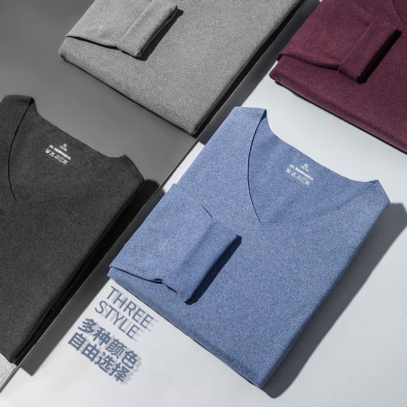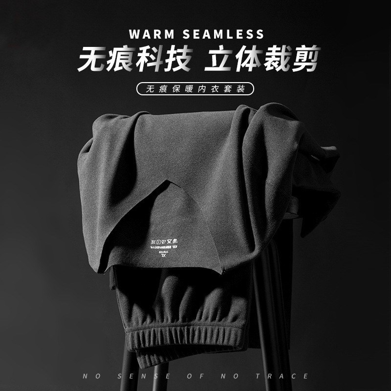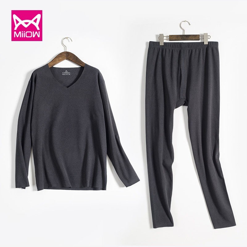 MiiOW/猫人活性印染保暖无痕双面磨绒男士亲肤保暖内衣加绒套装 M6601