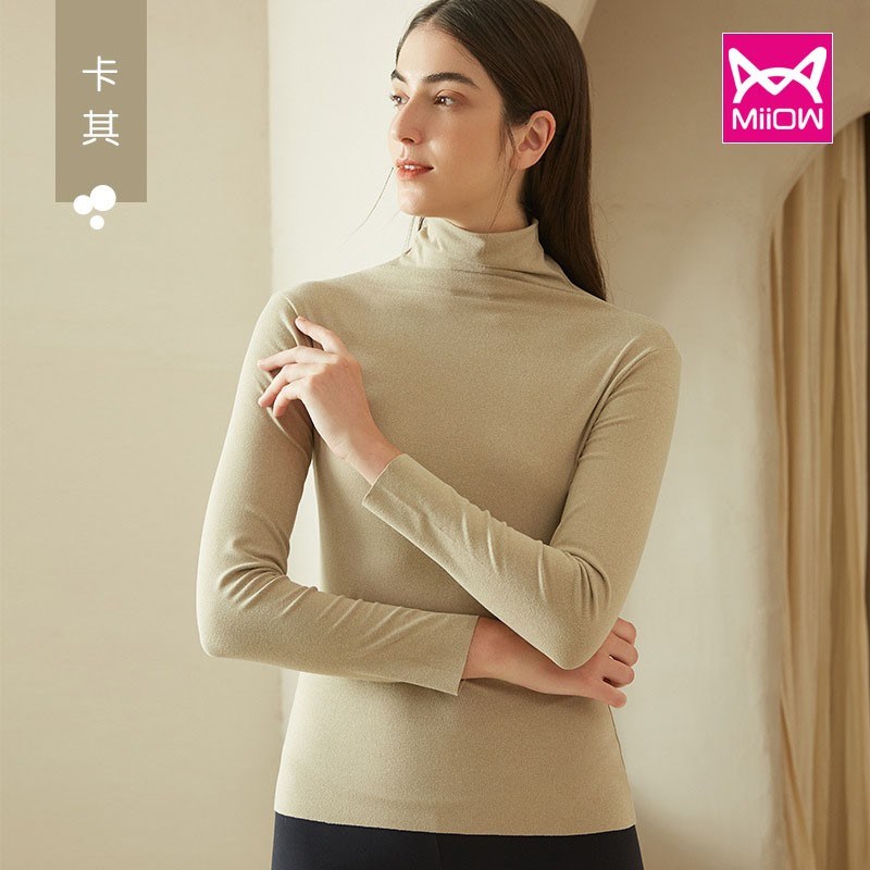 MiiOW/猫人堆堆领针织上衣女长袖高领打底衫女修身套头内搭毛衣M601