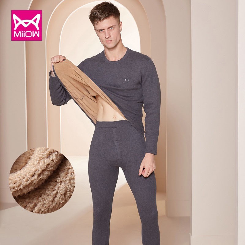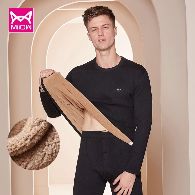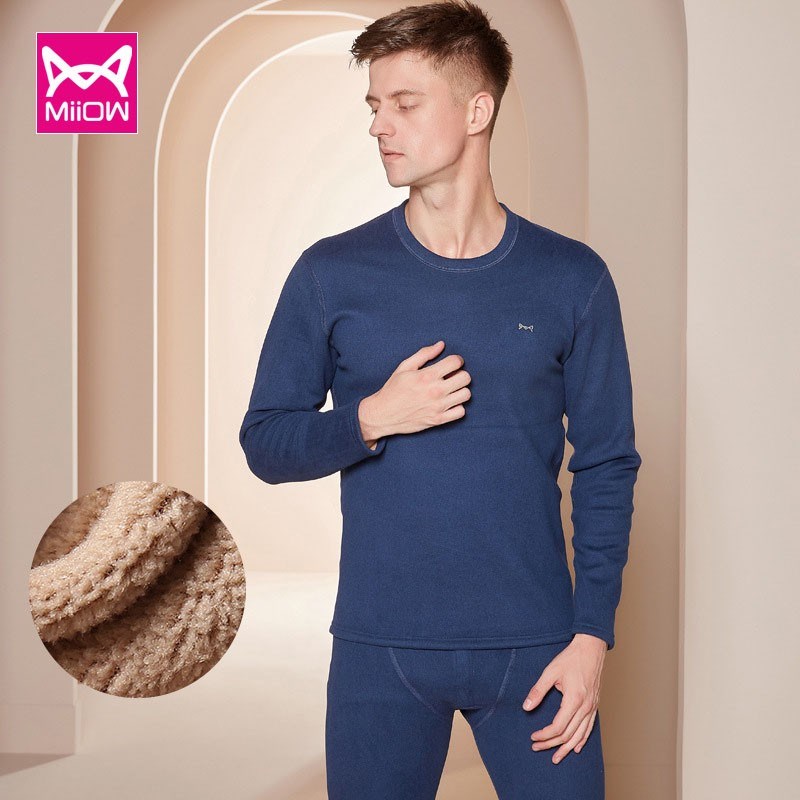 MiiOW/猫人新款加绒加厚奥利绒男女情侣保暖内衣套装789A
