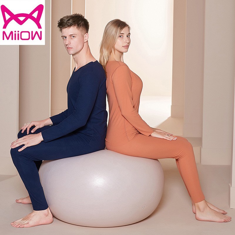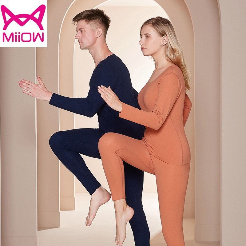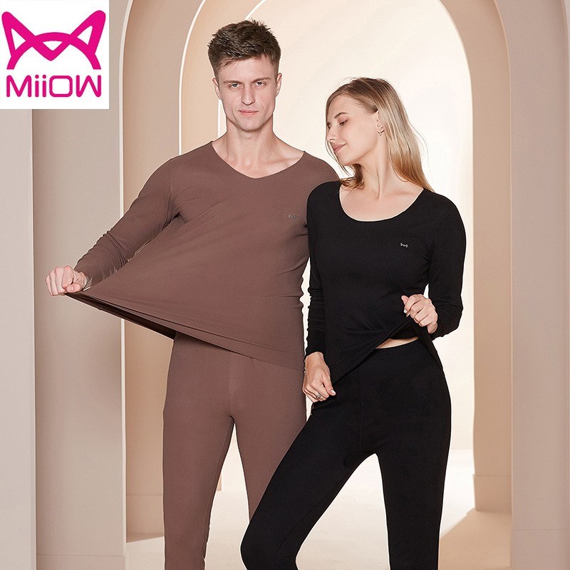 MiiOW/猫人加绒加厚圆领V领男女士双面磨毛保暖内衣套装修身668B