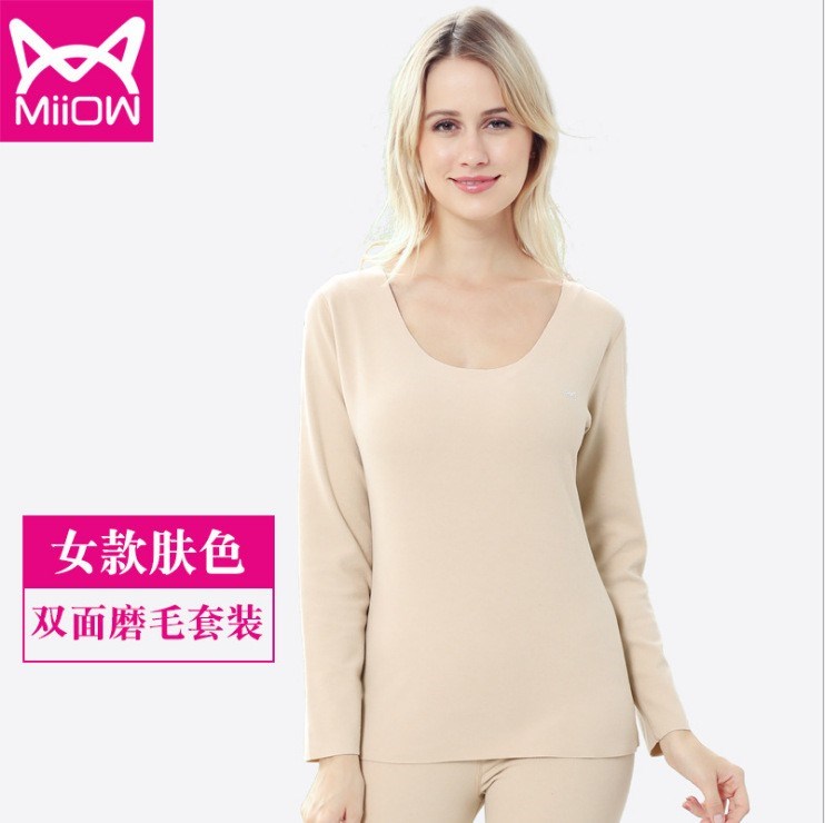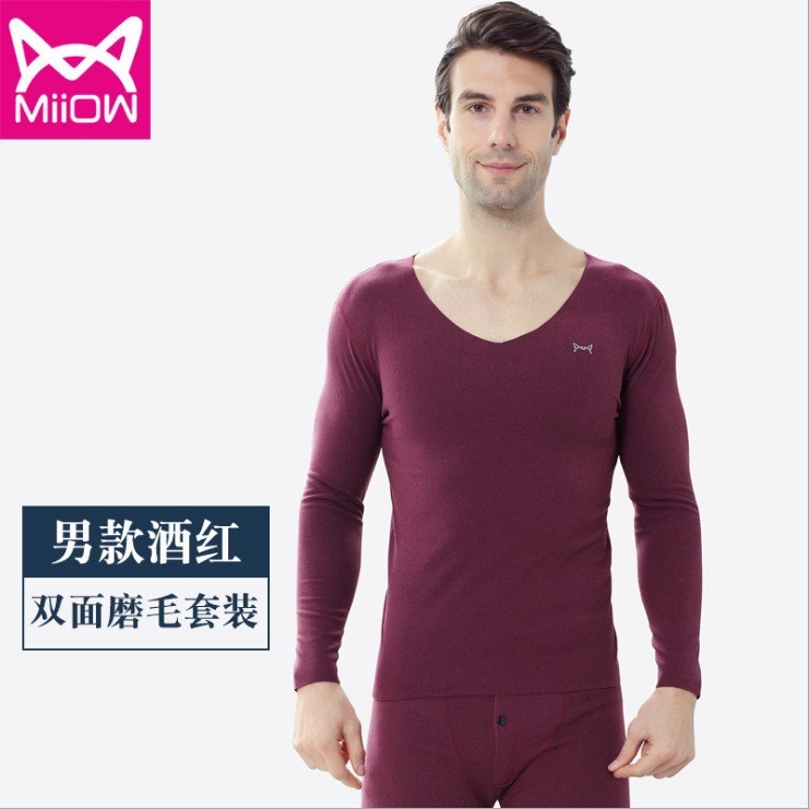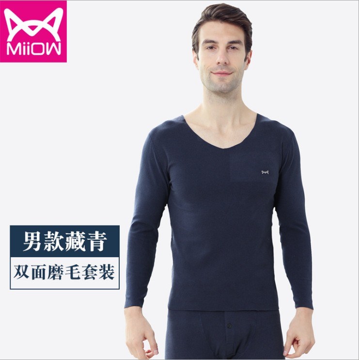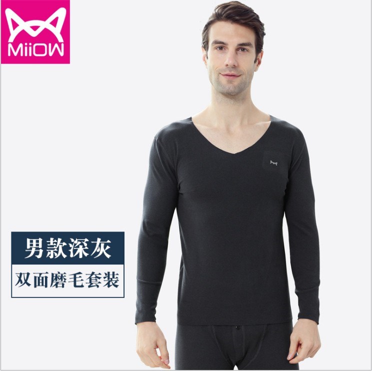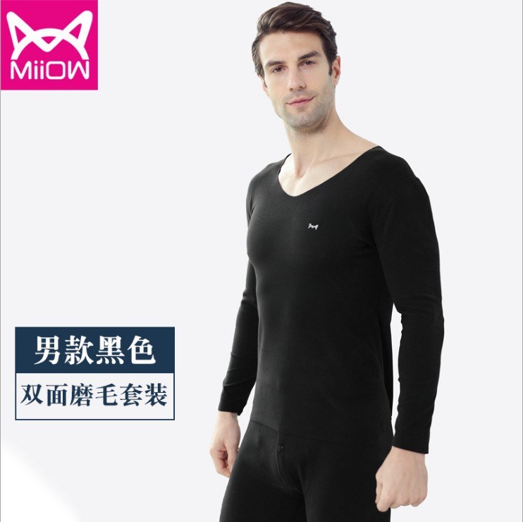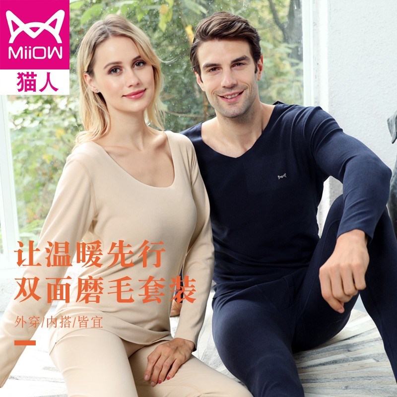 MiiOW/猫人男士女士情侣款阳离子双面随心裁保暖内衣套装经典款2997