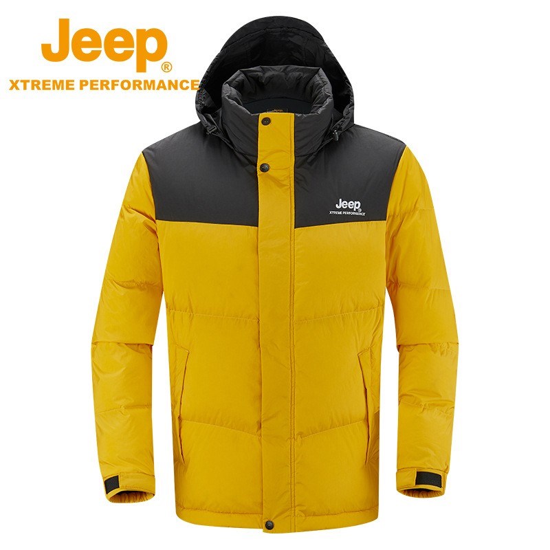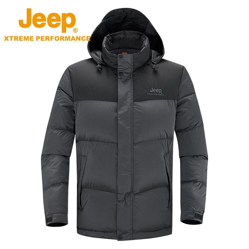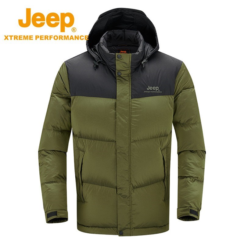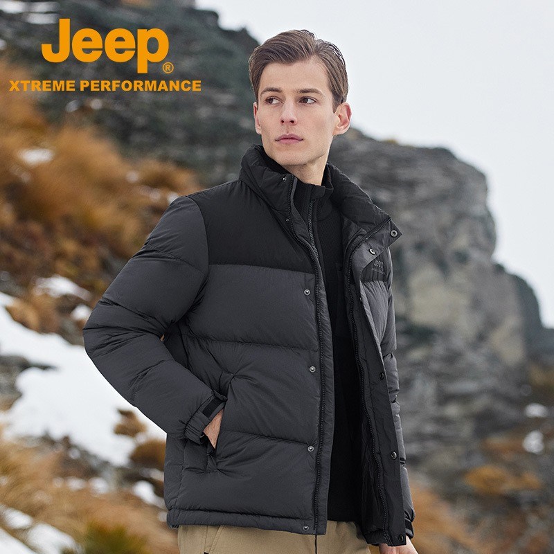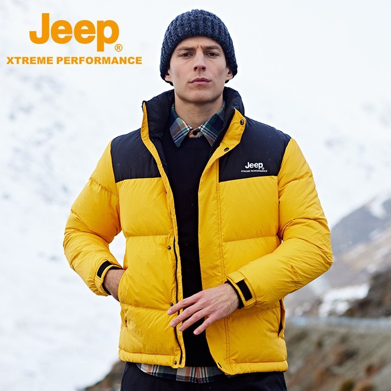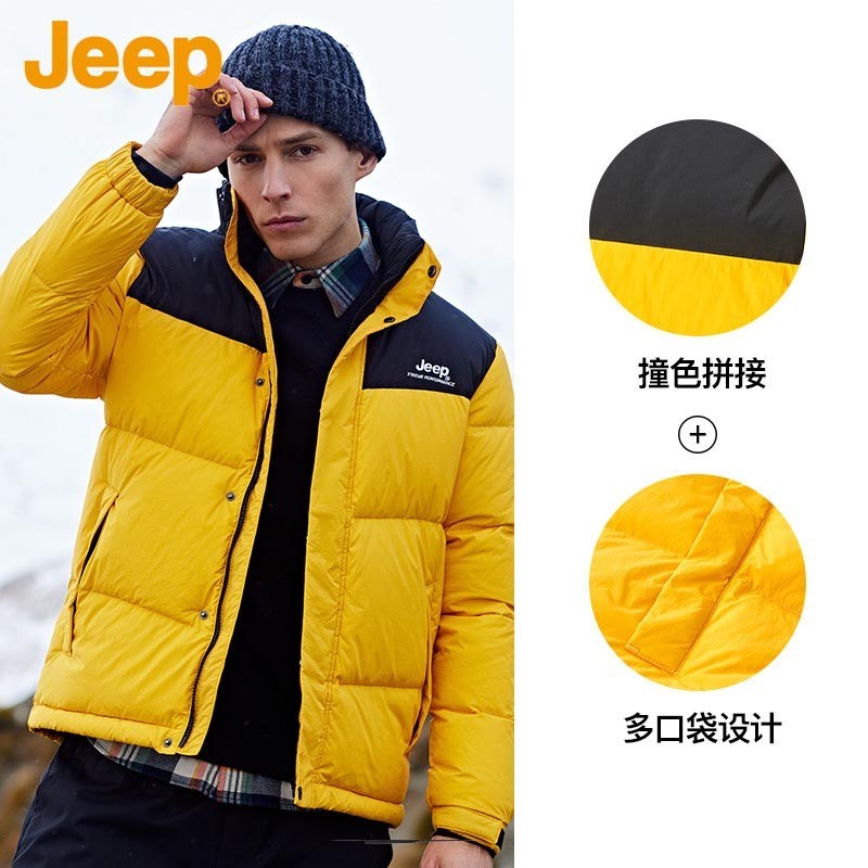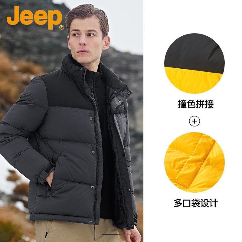 JEEP 秋冬新品时尚拼色保暖连帽运动休闲面包服90白鸭绒羽绒服男款J142094798