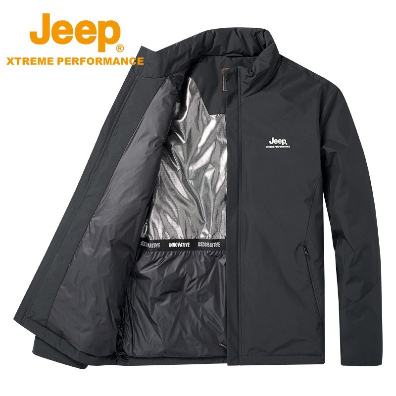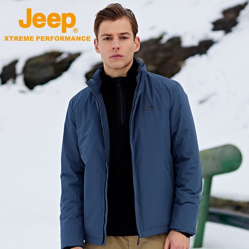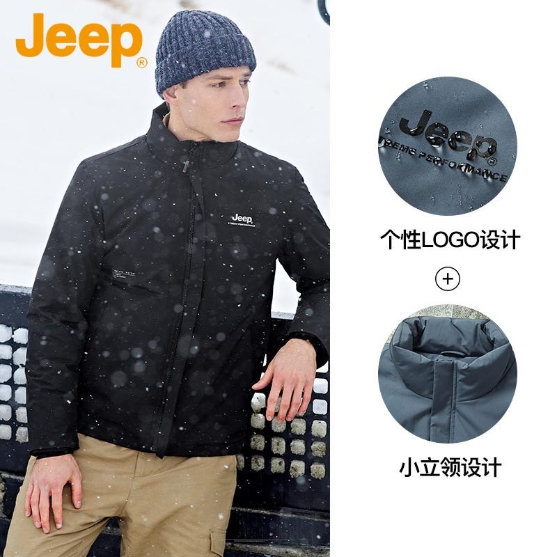 JEEP 立领轻薄羽绒服男短款冬季保暖白鸭绒锁温防风中年外套男J142094715