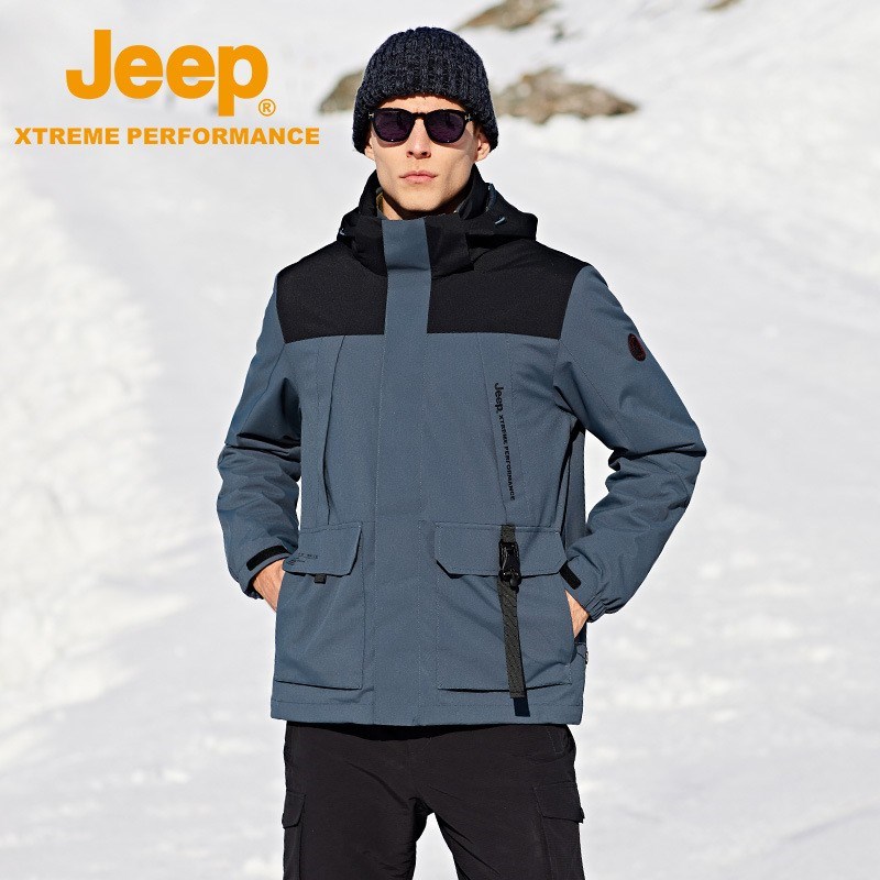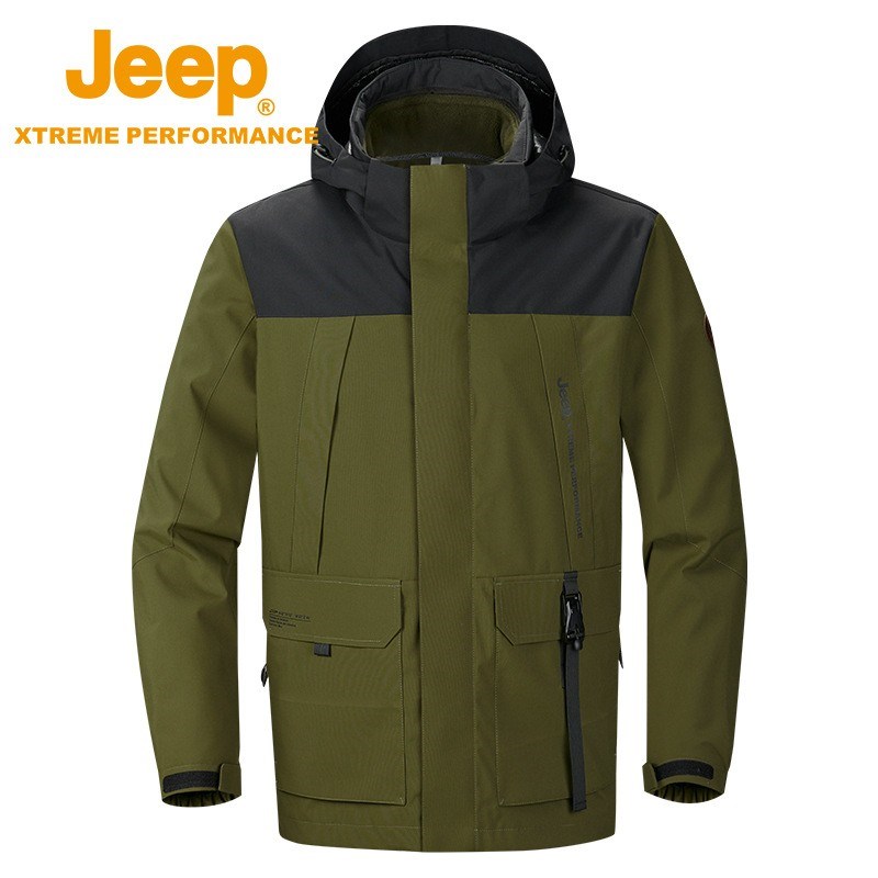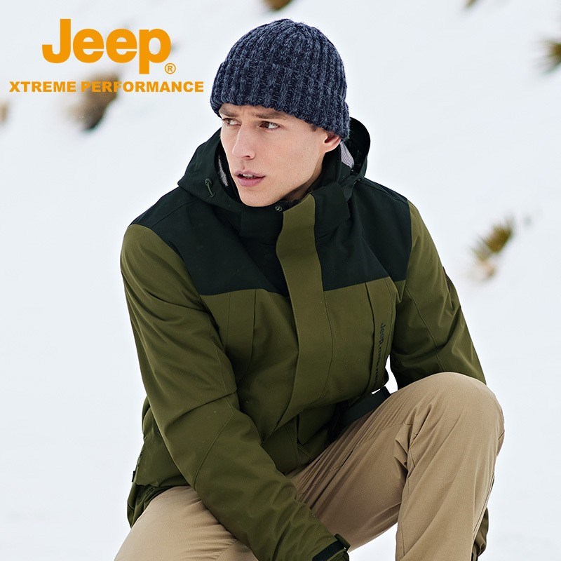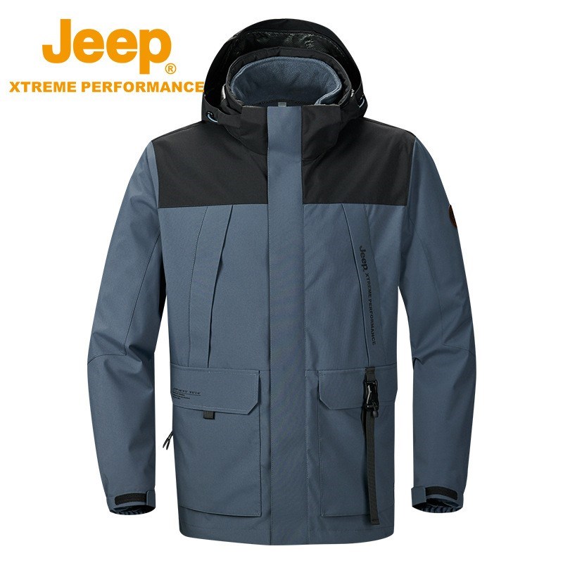 JEEP 冬季三合一两件套冲锋衣男套装防水防风透气保暖登山服装男可拆卸J142094081