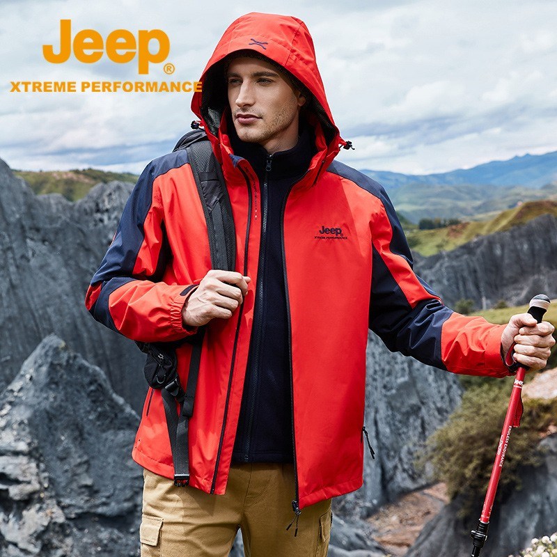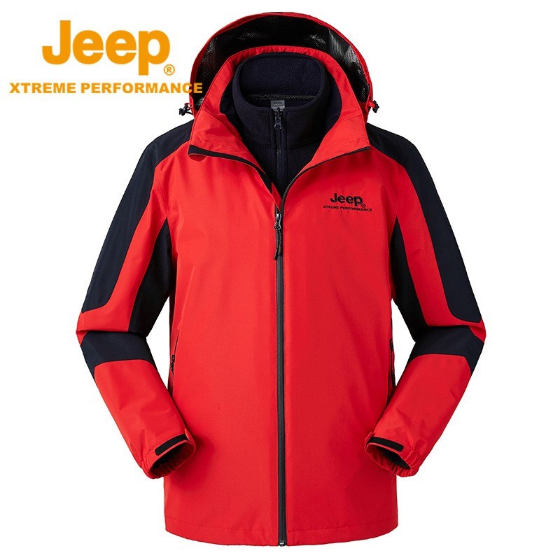 JEEP 户外情侣冲锋衣男户外秋冬三合一登山可拆卸防油防风防水透气外套J042094041