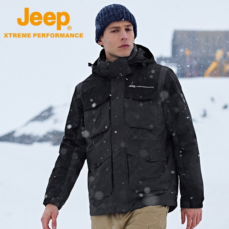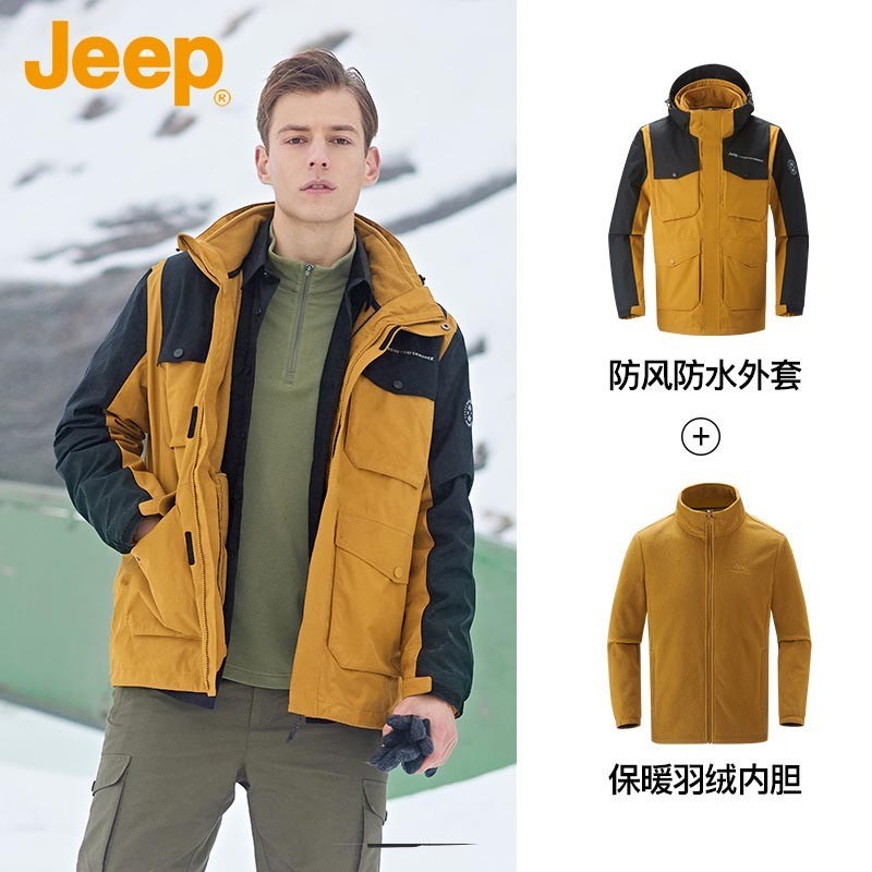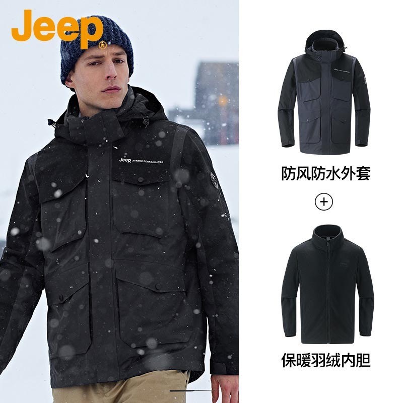 JEEP 时尚男士冲锋衣男三合一石墨烯面料外套男户外登山服加厚防水外套J142094077
