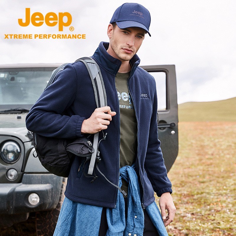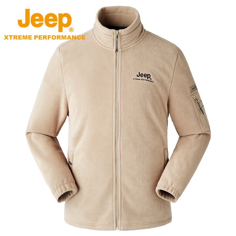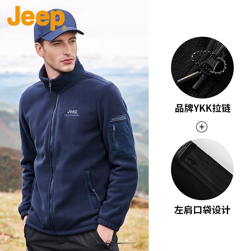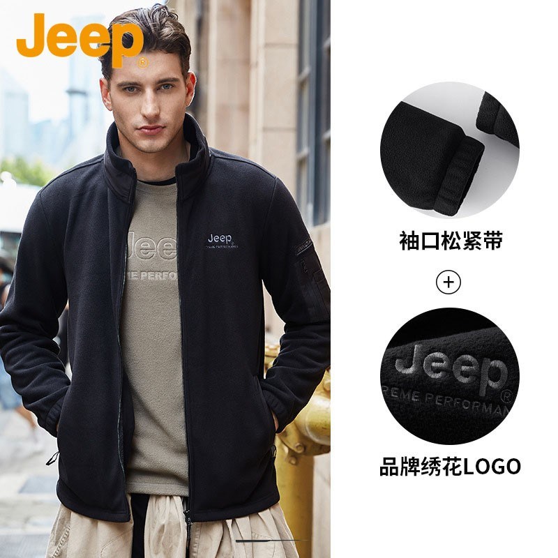 JEEP 户外摇粒绒外套男秋季潮流立领中青年男抓绒开衫卫衣加绒夹克J032094297