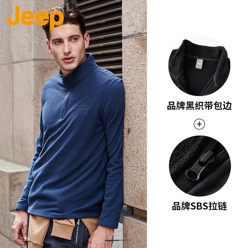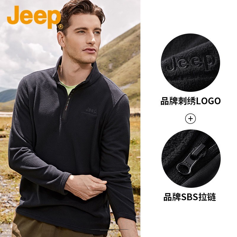 JEEP 男外套秋冬季防风保暖抓绒立领加厚摇粒绒透气休闲套头上衣J032094289