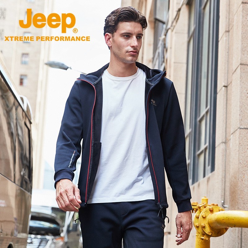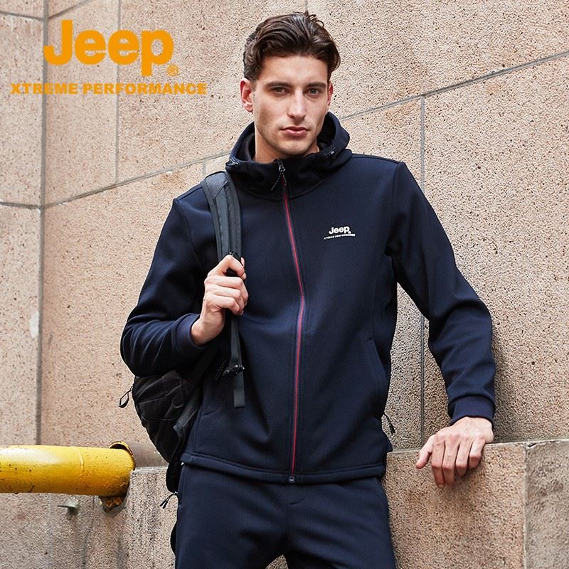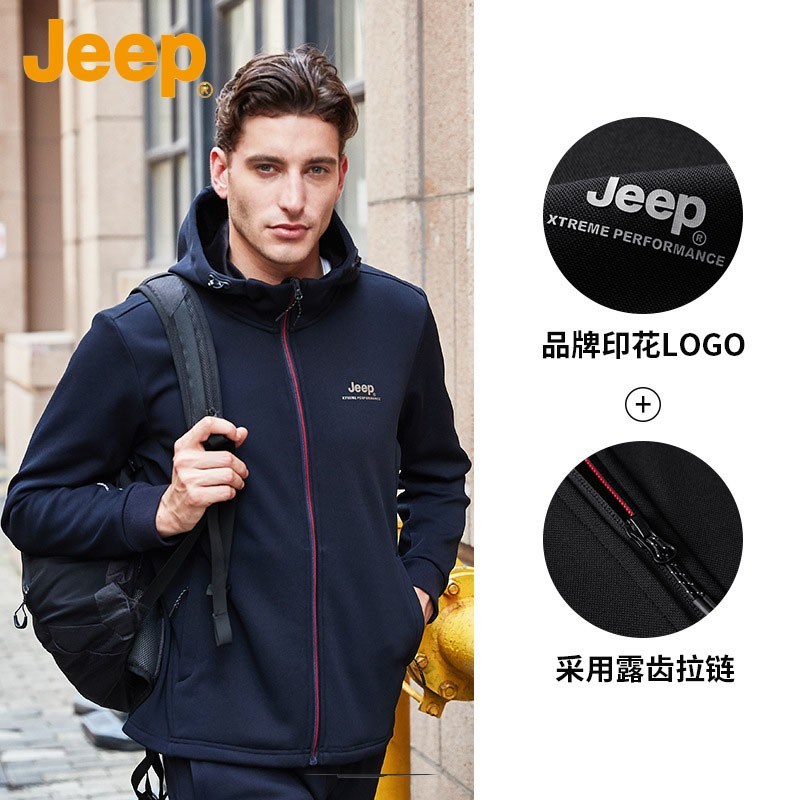 JEEP 户外秋冬季休闲男装开衫夹克连帽长袖针织上衣运动外套男士潮J032096149