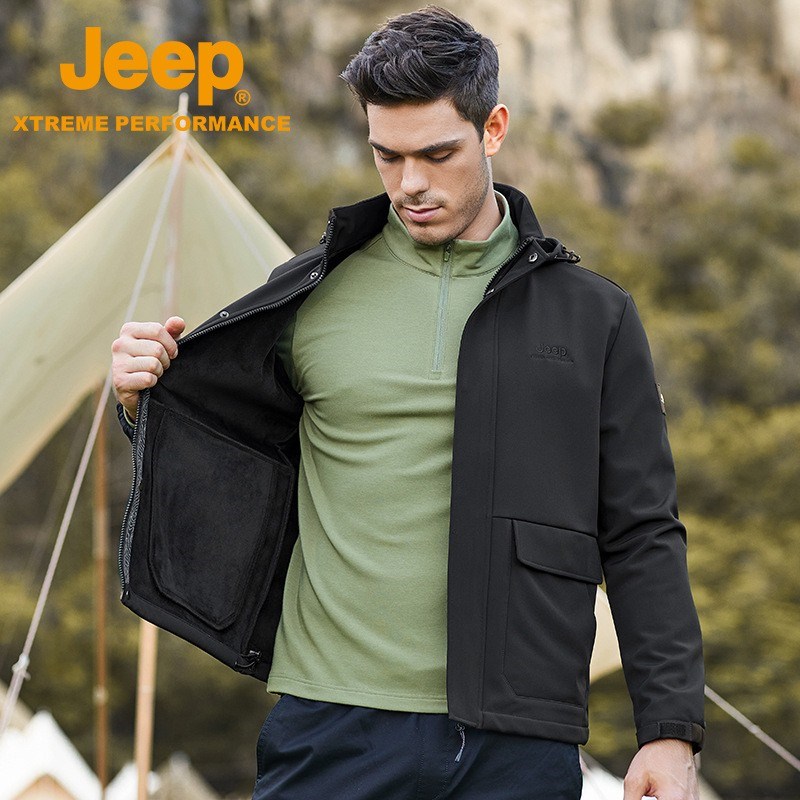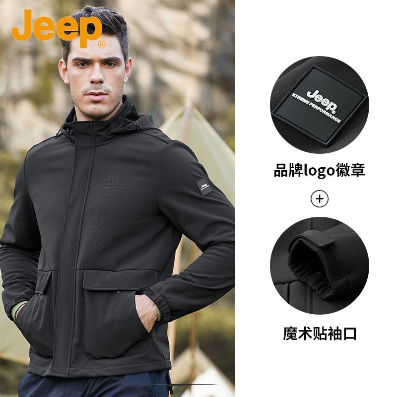 JEEP 秋季新款休闲青年拉链纯色连帽拉链夹克外套J132095663