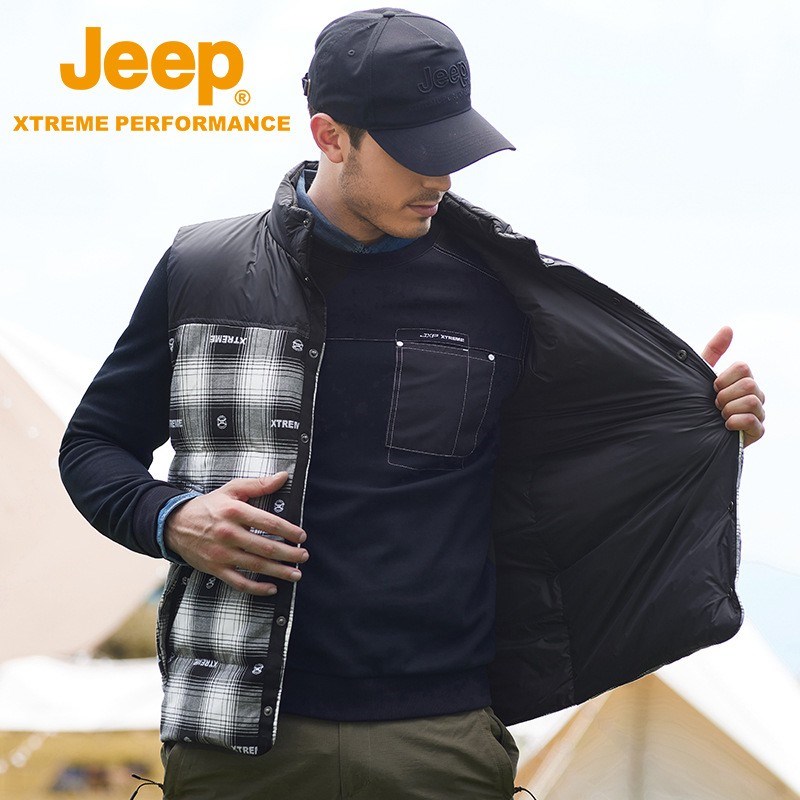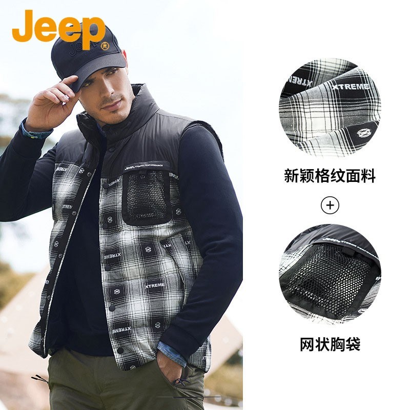 JEEP 秋季新款立领纯色拉链休闲格子羽绒马甲J132094917