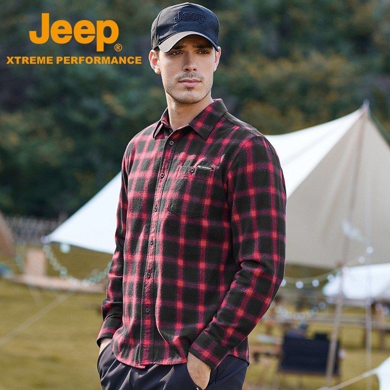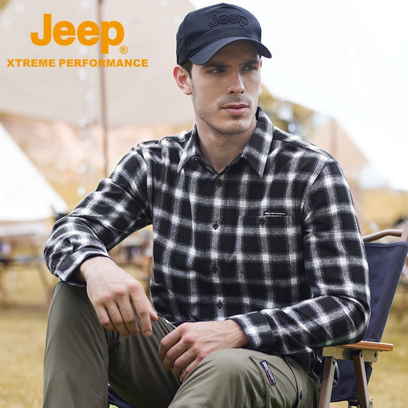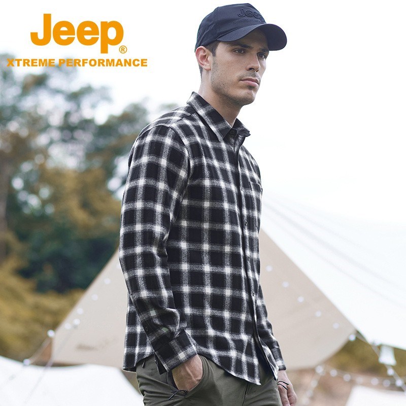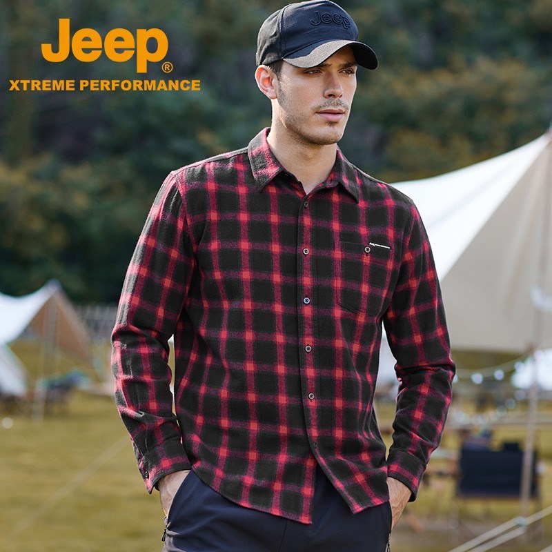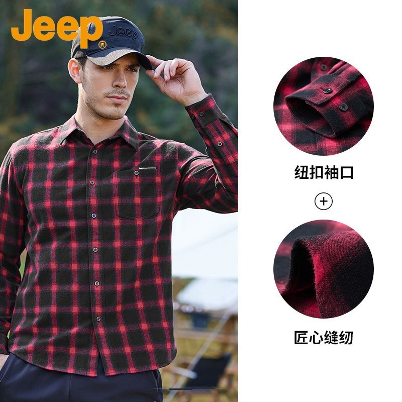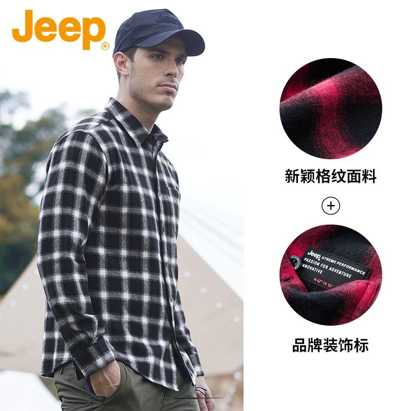 JEEP 秋季新款翻领休闲格子棉青年衬衫J132094603