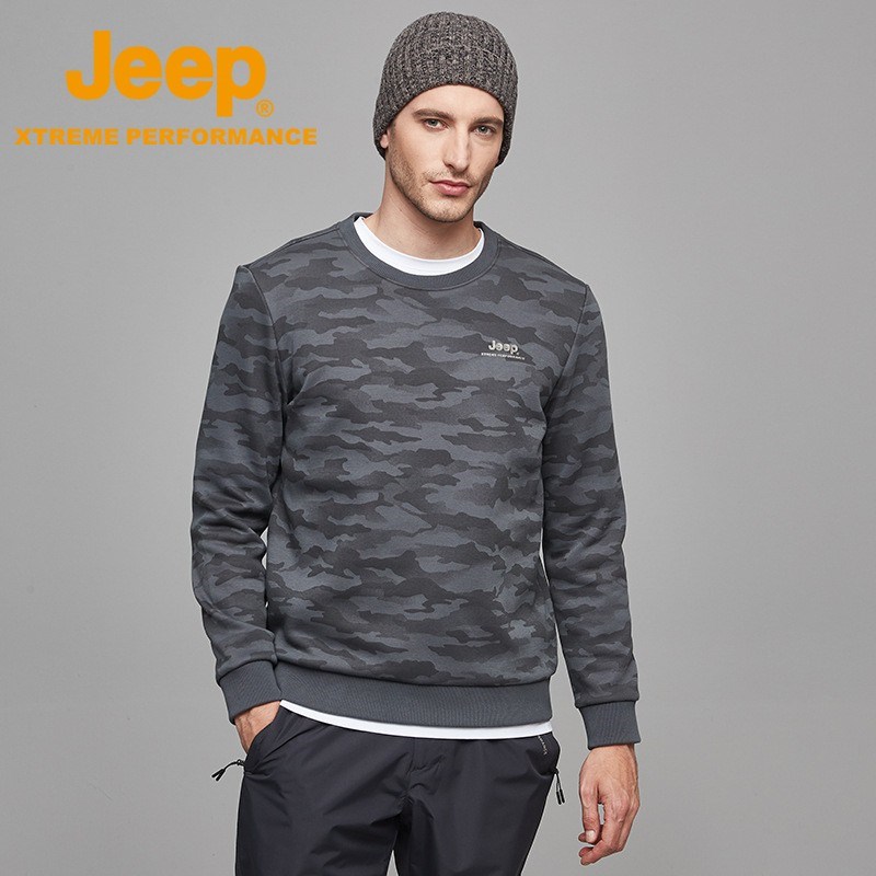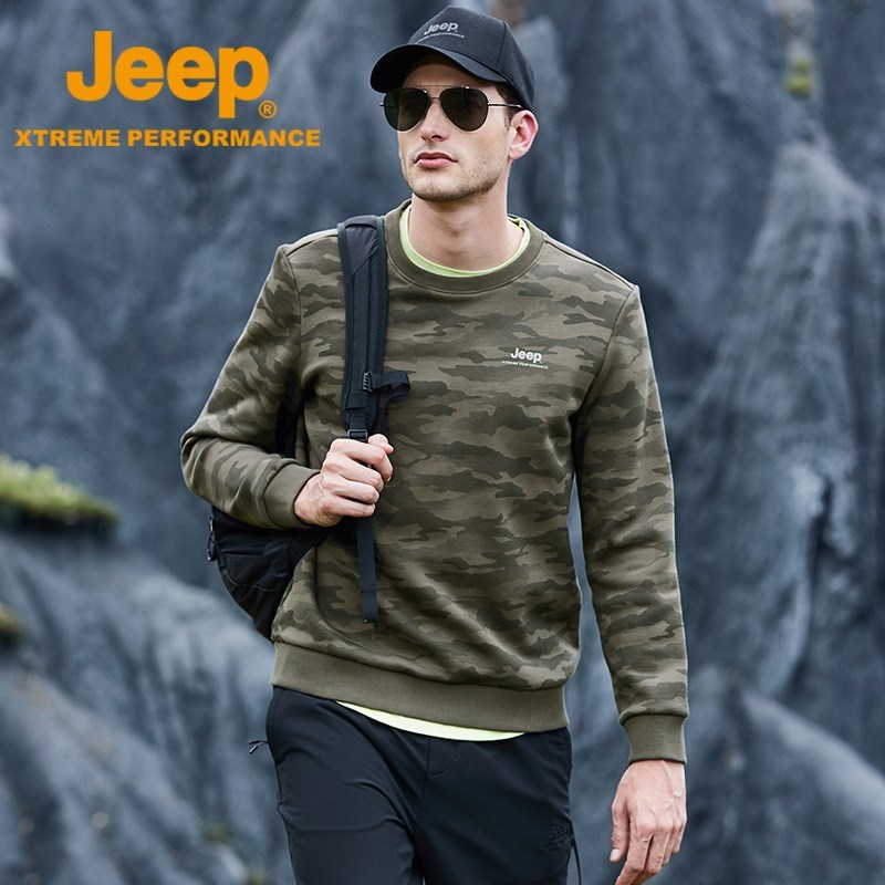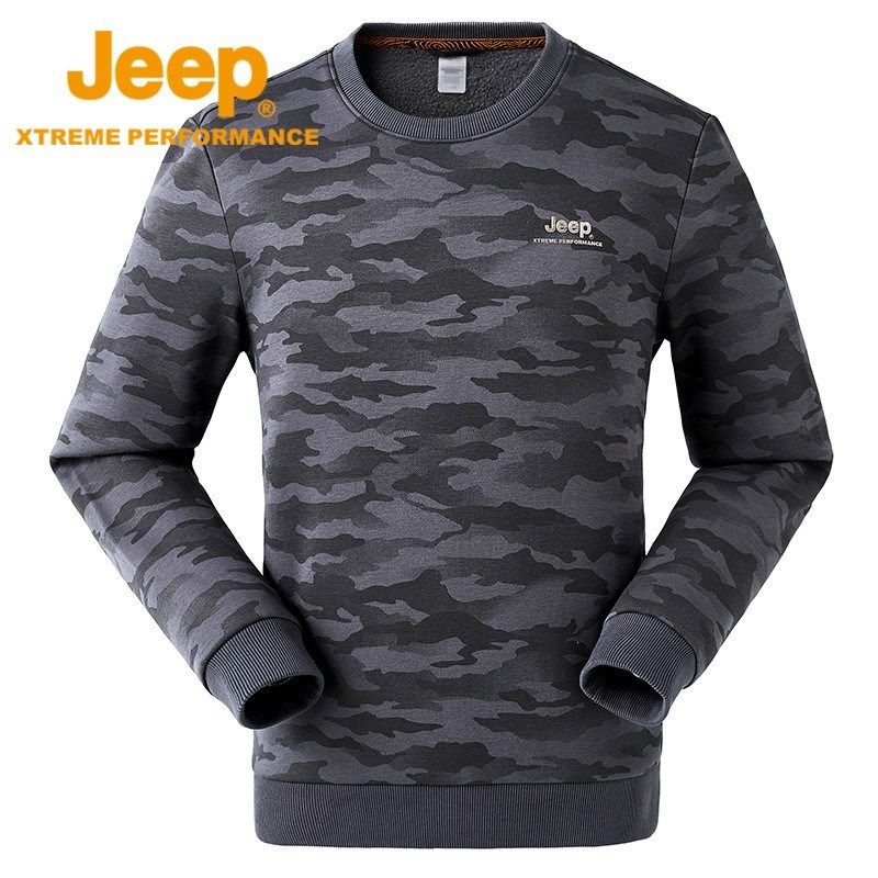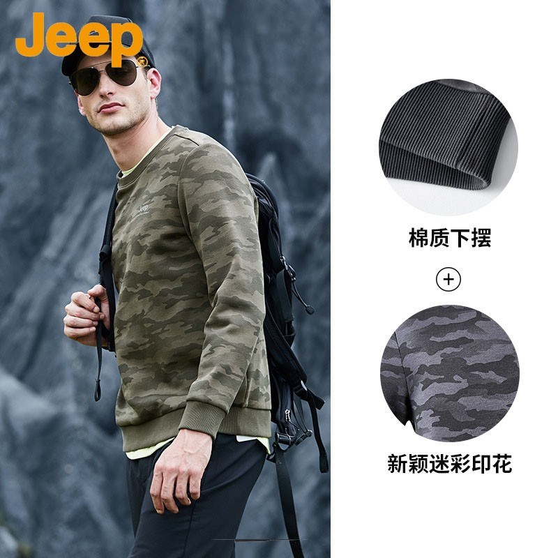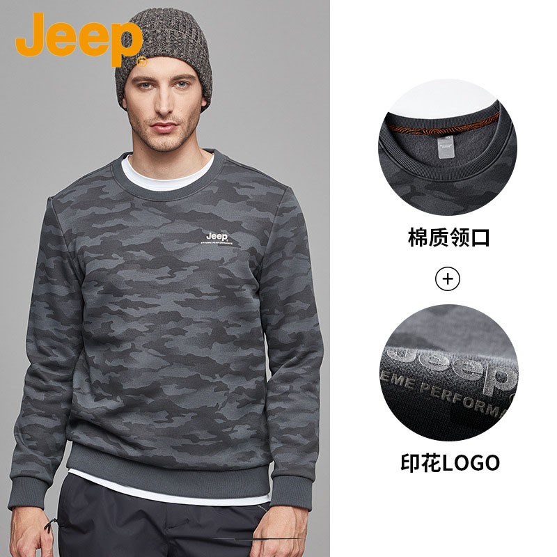 JEEP 户外迷彩印花套头卫衣男士秋冬季新款宽松时尚保暖大码打底衫J032094361