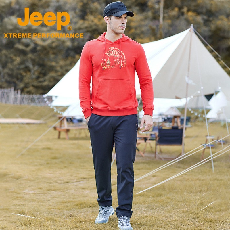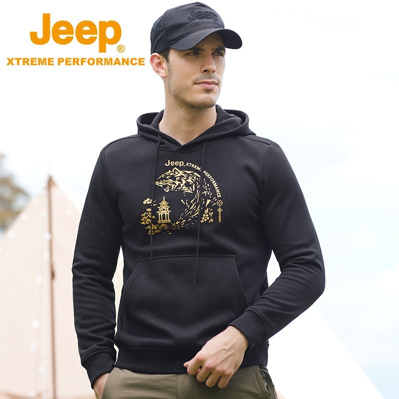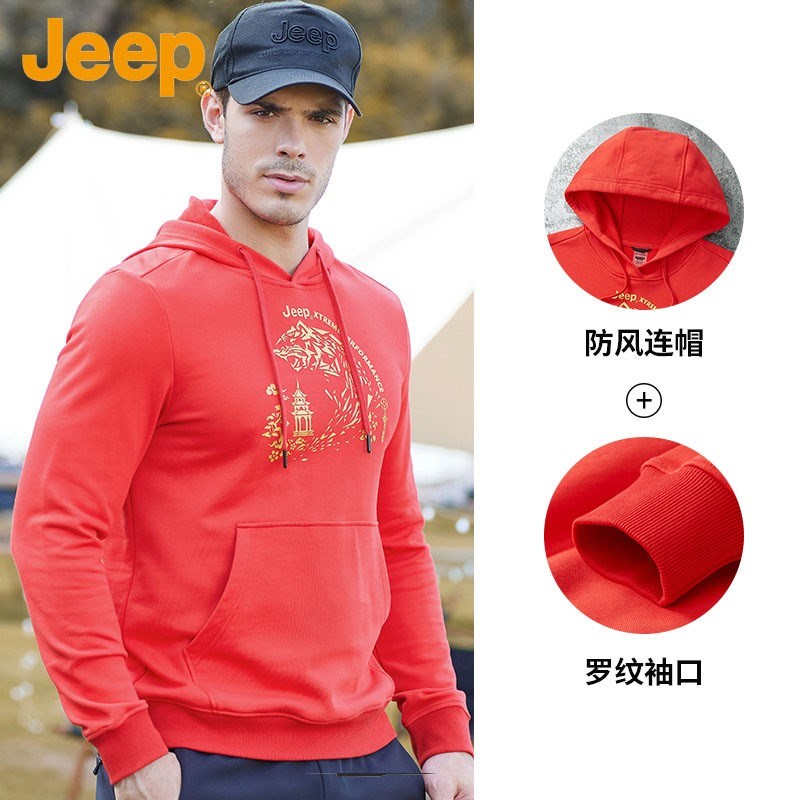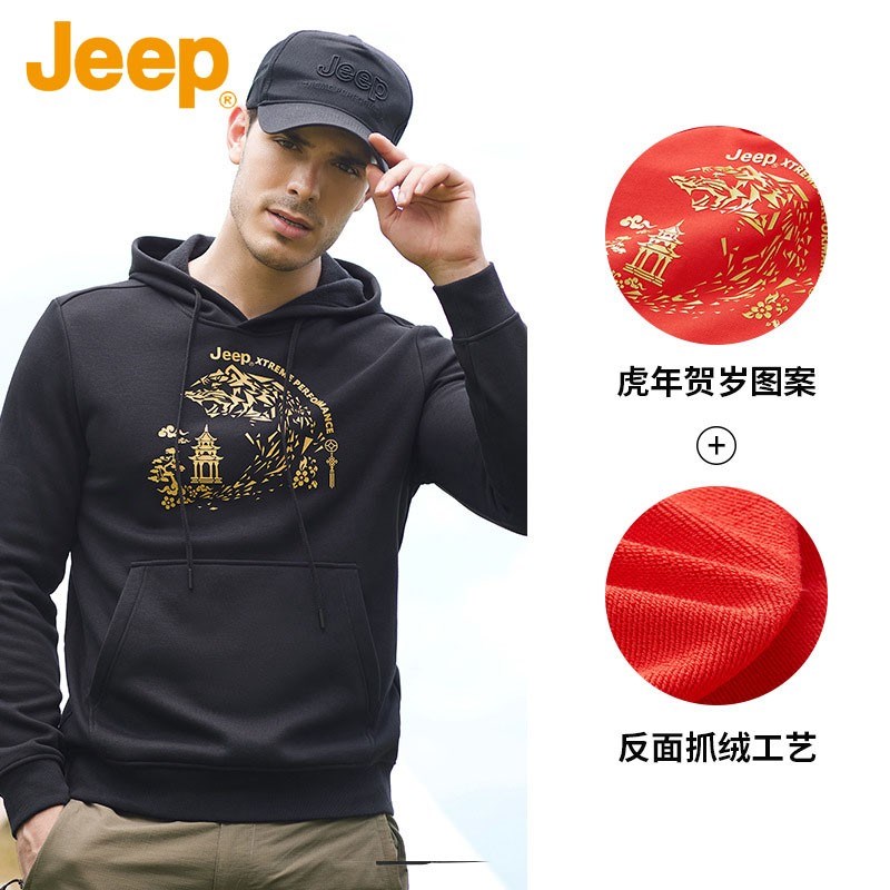JEEP 秋季新款连帽休闲动物图案纯色长袖卫衣J132094322