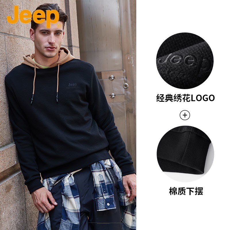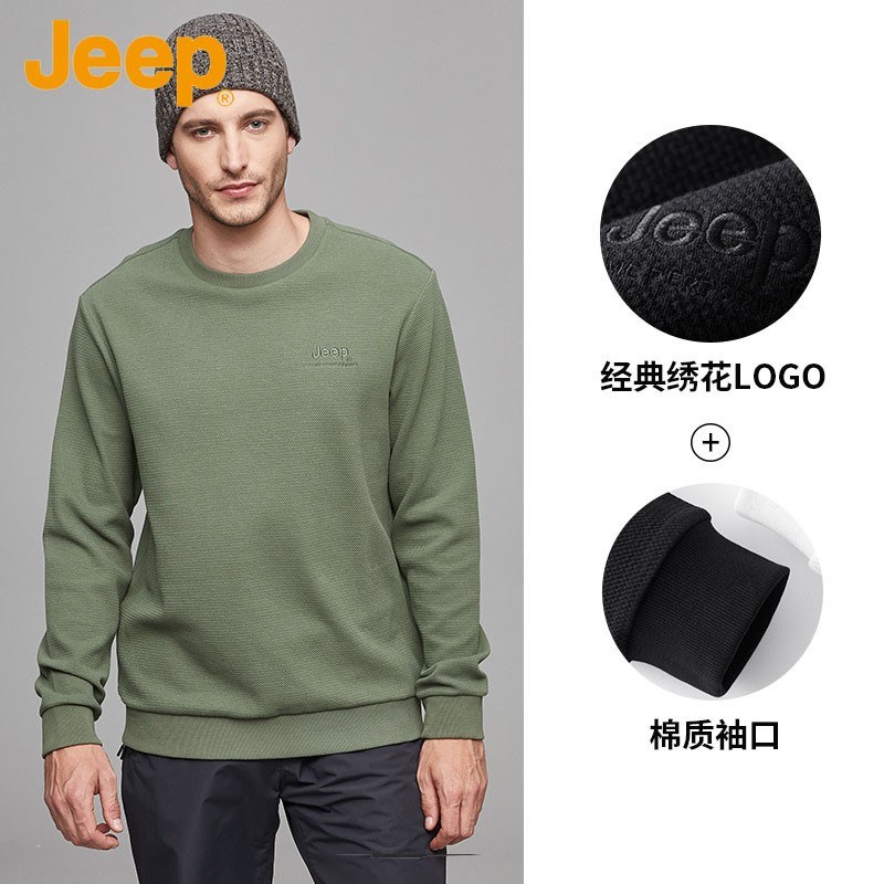 服饰配饰>男装>套头衫/卫衣> JEEP 户外男士长袖秋冬防风保暖宽松套头卫衣圆领运动卫衣打底衫J032094365