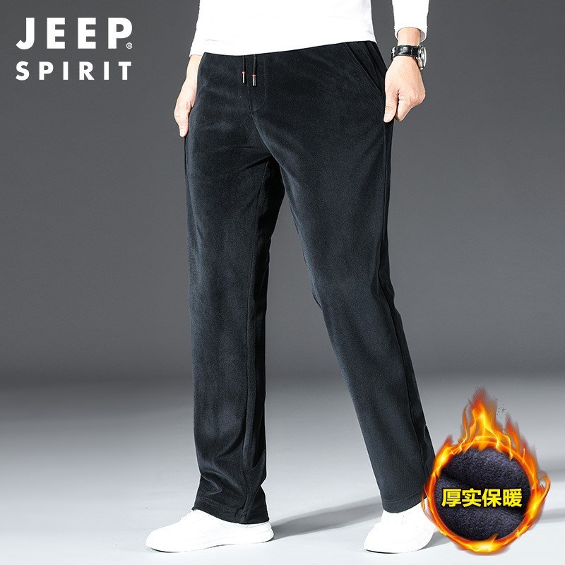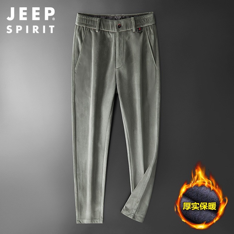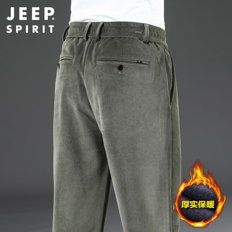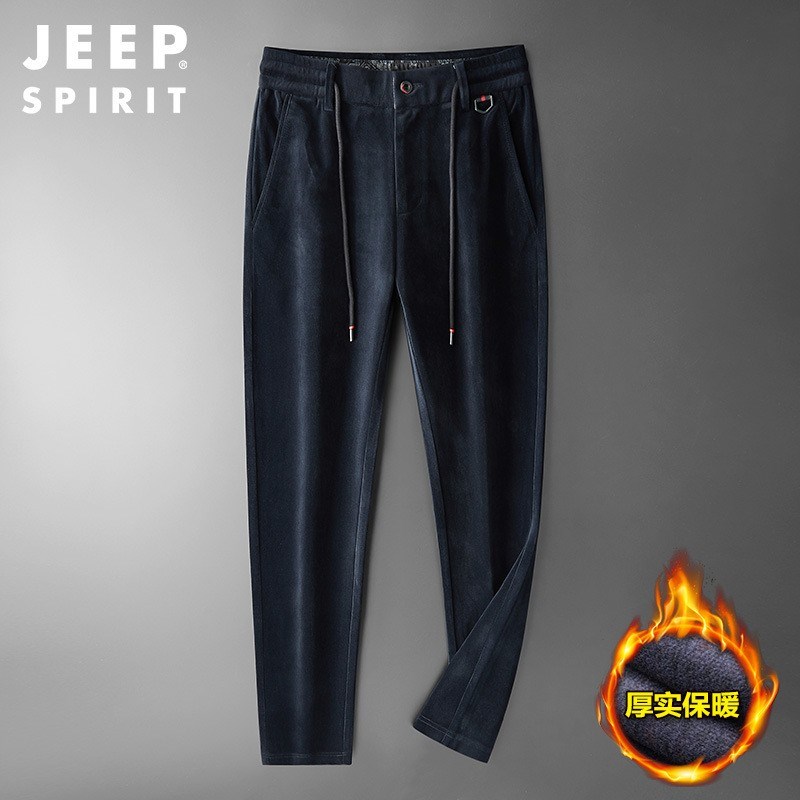服饰配饰>男装>休闲裤> JEEP SPIRIT秋季新款纯色微弹日常中腰灯芯绒长裤青年HDS0962