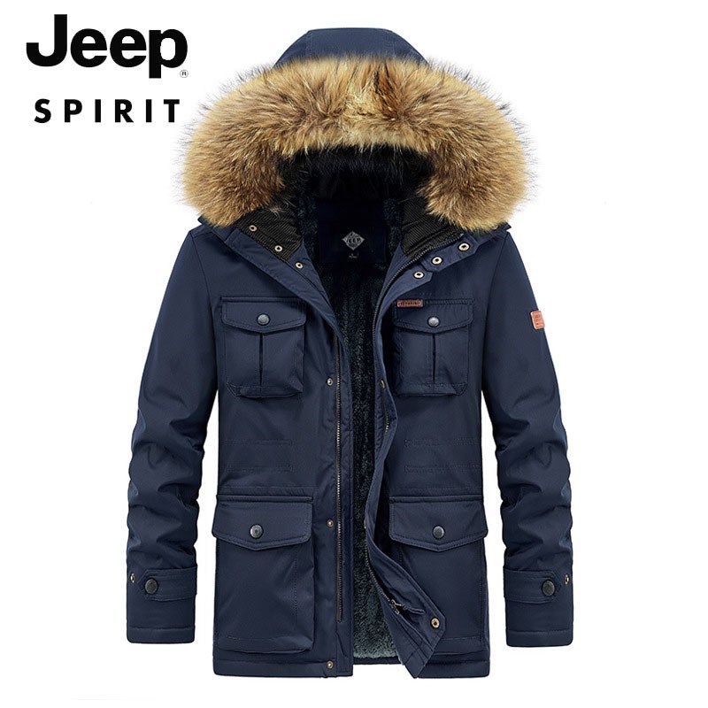 JEEP SPIRIT秋冬新款青年纯色拉链加厚休闲连帽棉衣外套21879