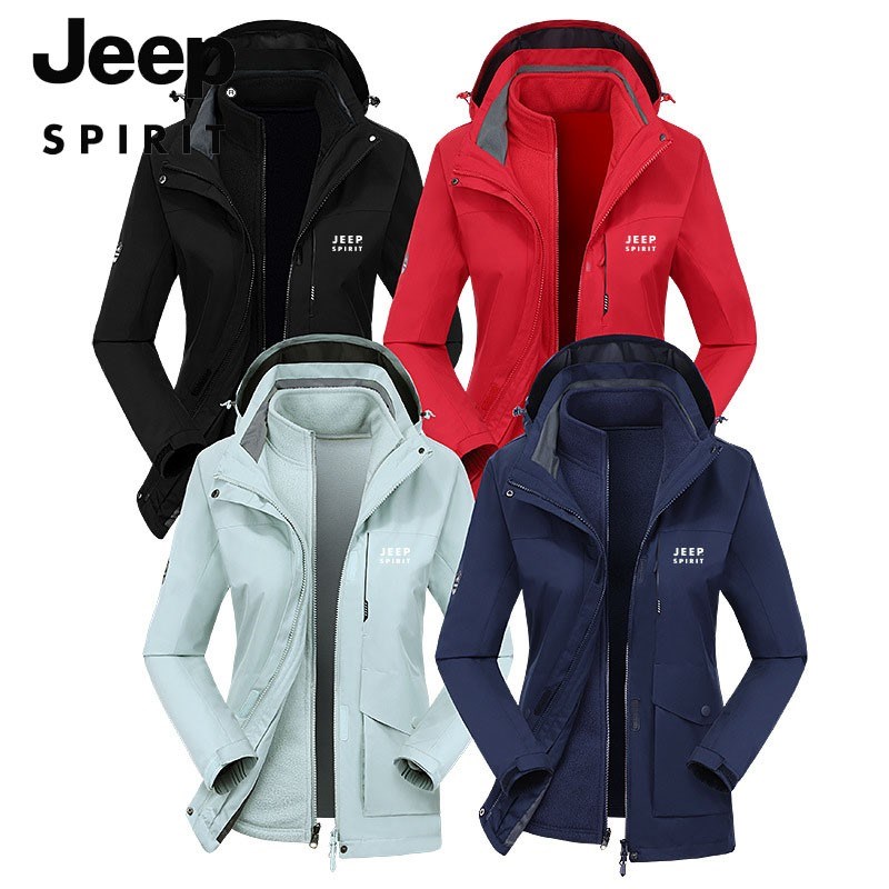 JEEP SPIRIT套摇粒冲锋衣冬季纯色连帽可拆卸立领情侣冲锋衣JP6009