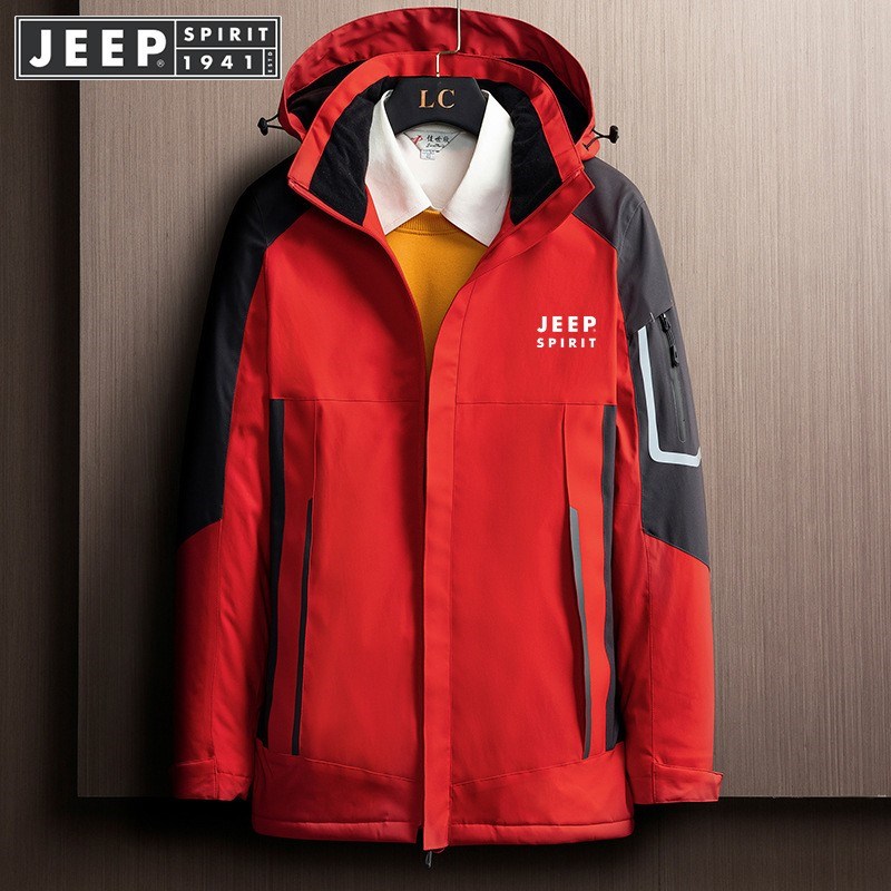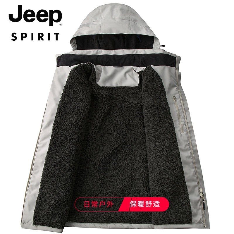 JEEP SPIRIT情侣加绒夹克秋冬纯色成人加绒冲锋衣JP6001
