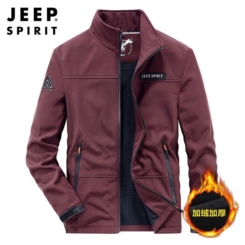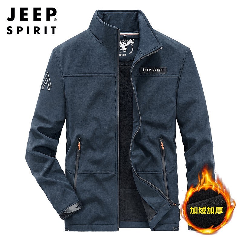 JEEP SPIRIT秋季新款拉链加绒立领青年休闲侧缝插袋夹克JPL0958