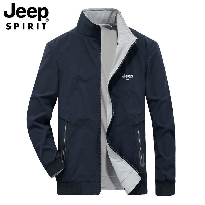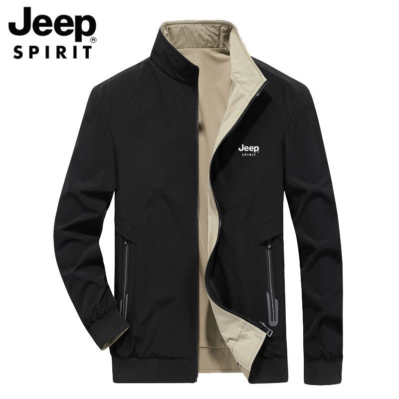 JEEP SPIRIT夹克男装春秋季新款双面穿立领外套休闲宽松大码上衣HX-8193