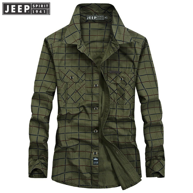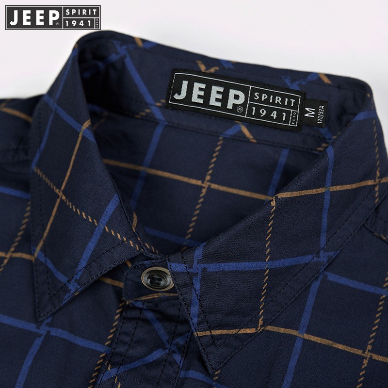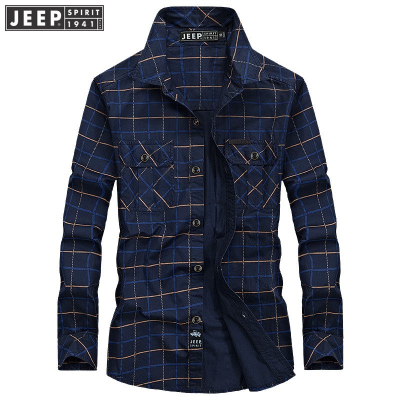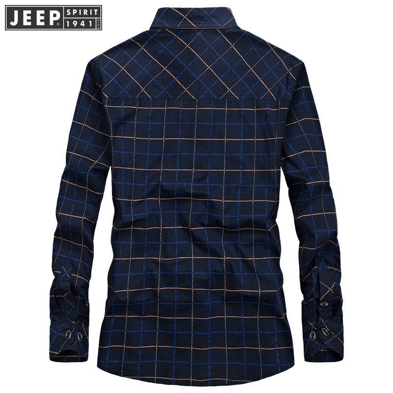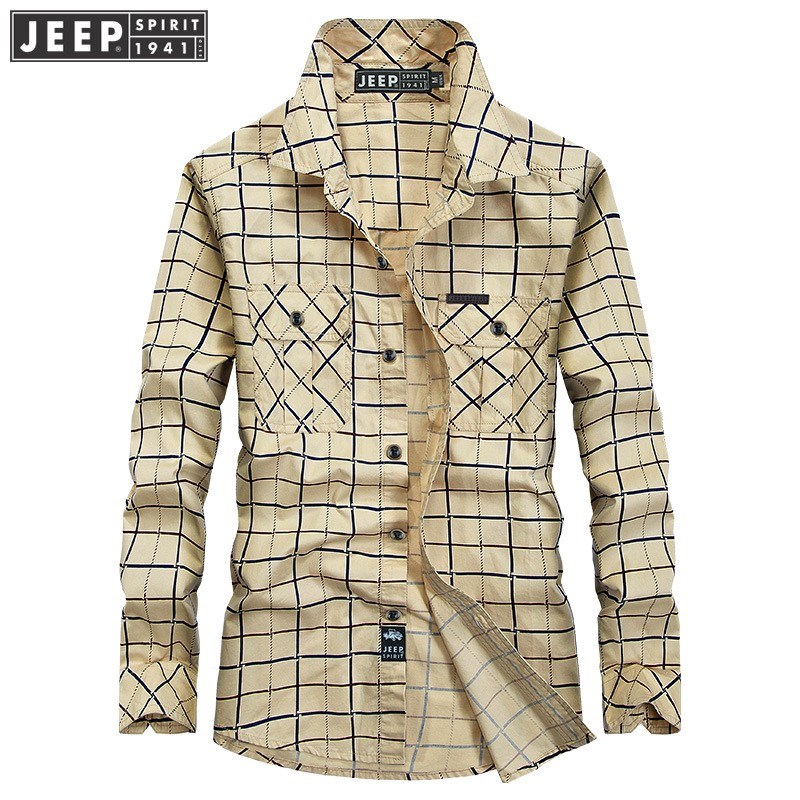 JEEP SPIRIT男装春秋薄款男士休闲纯棉长袖衬衫青年大码宽松格子衬衣RSC006