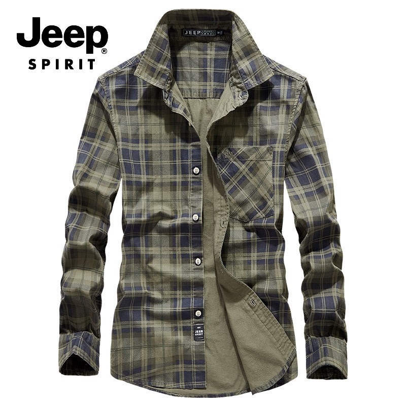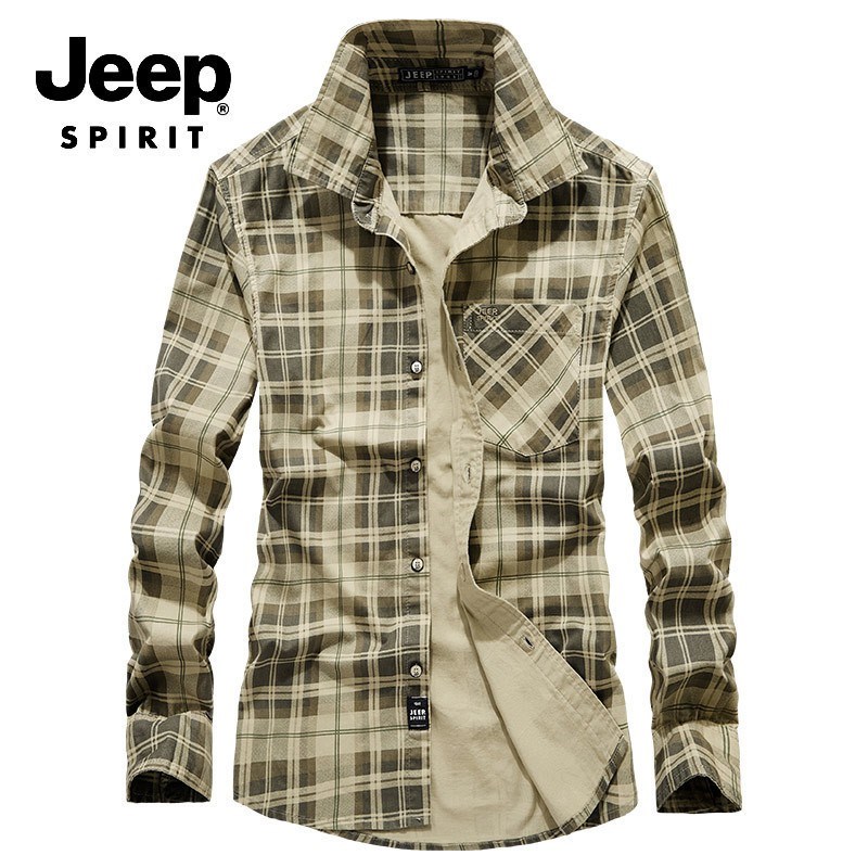 JEEP SPIRIT男士棉格子长袖衬衫大码休闲衬衣0020
