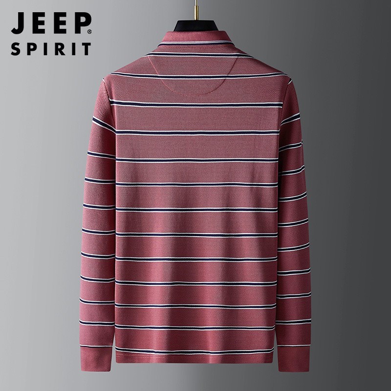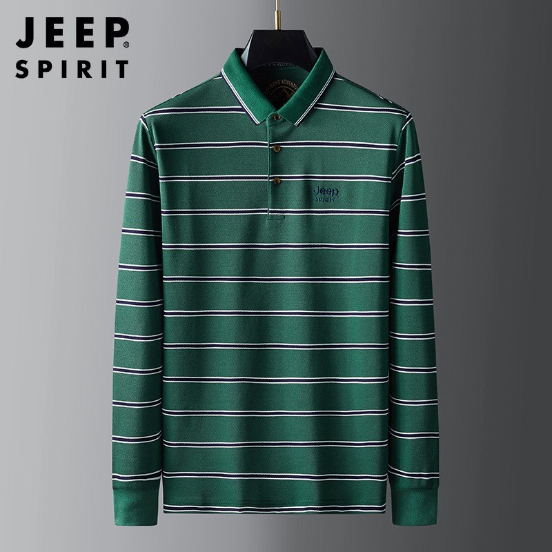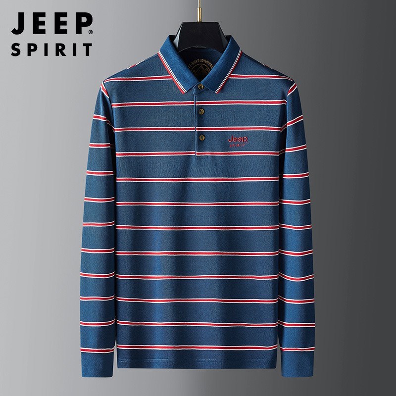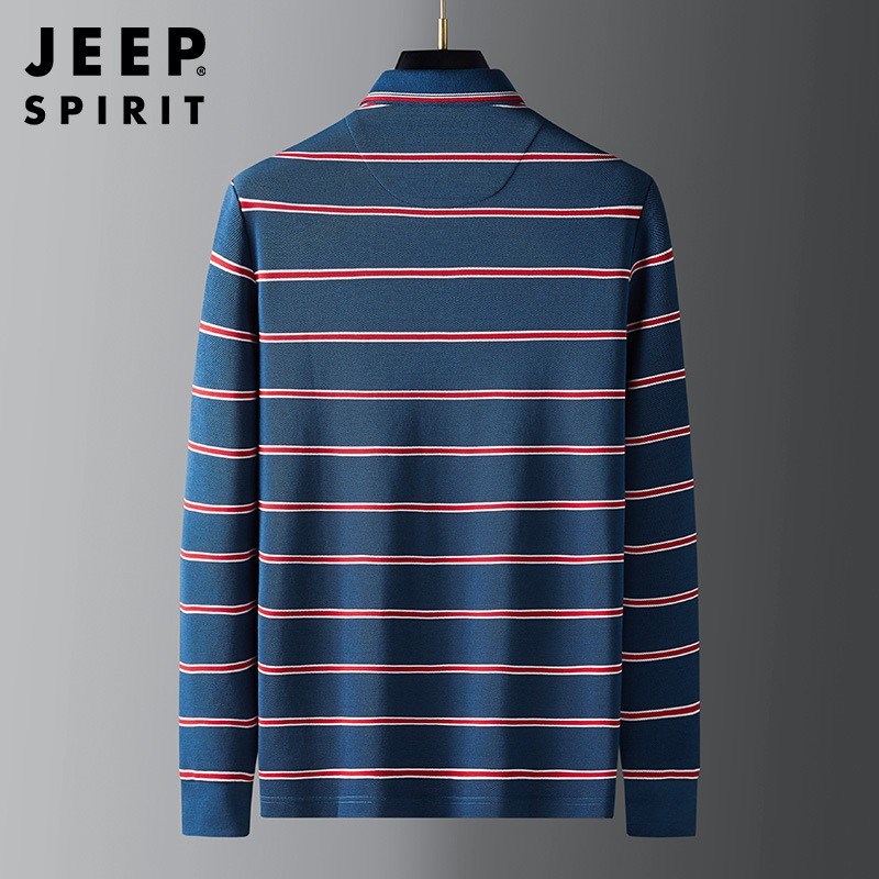 JEEP SPIRIT秋季新款翻领条纹休闲棉宽松型春秋季POLE衫BMN0989