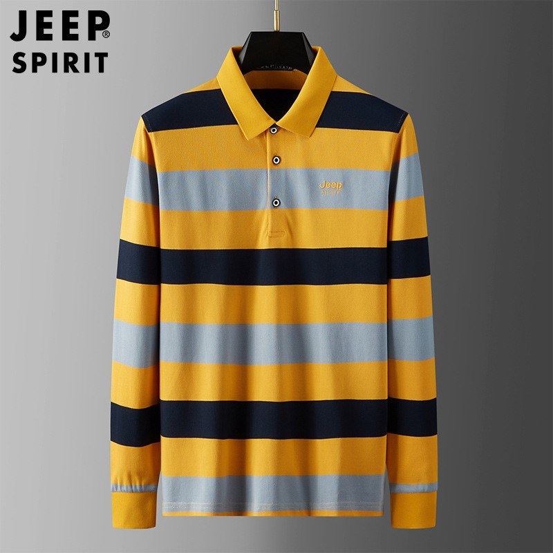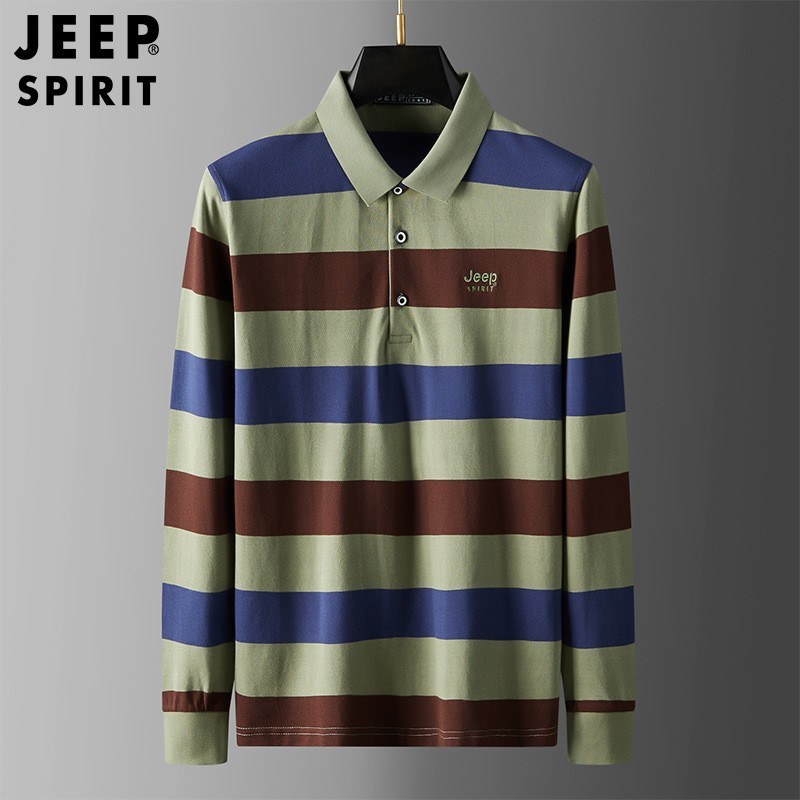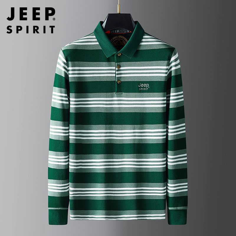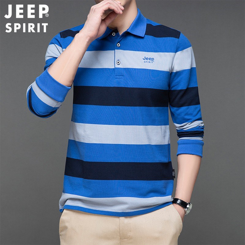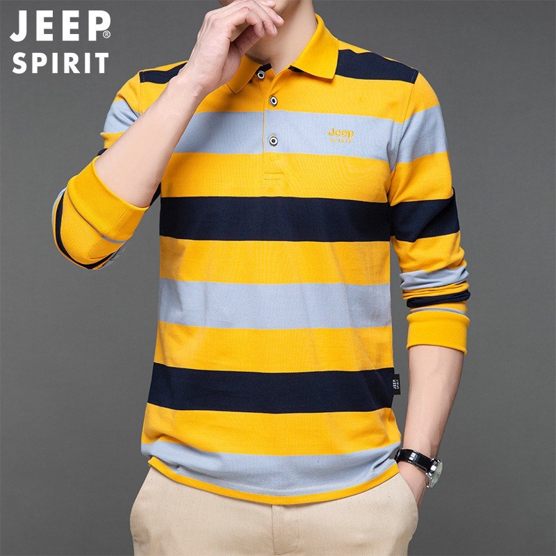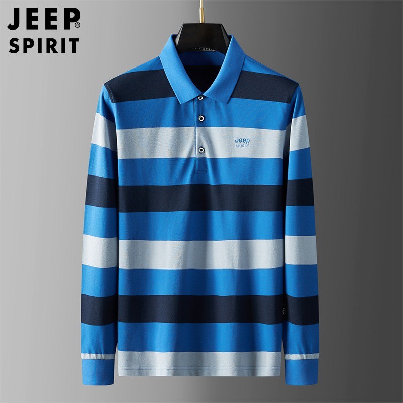 JEEP SPIRIT春秋新款polo衫男长袖时尚潮流修身纯棉条纹设计休闲男士t恤H-9017