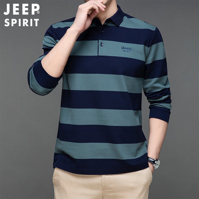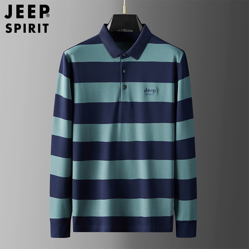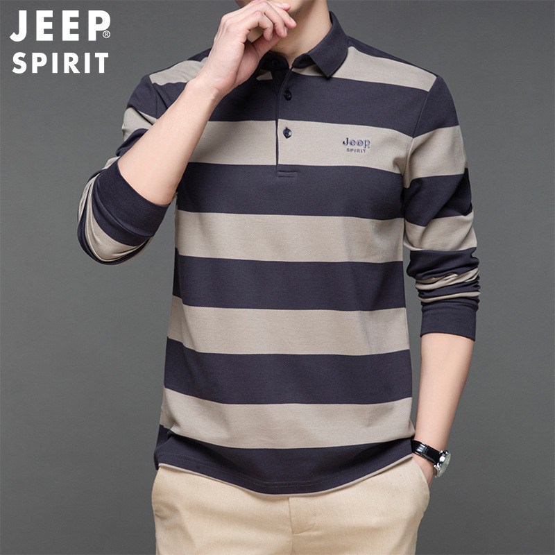 JEEP SPIRIT男士长袖t恤纯棉春秋季新款翻领中青年商务纯棉POLO条纹上衣H-28170
