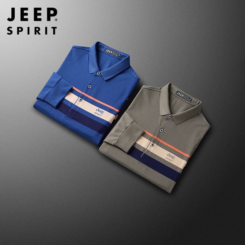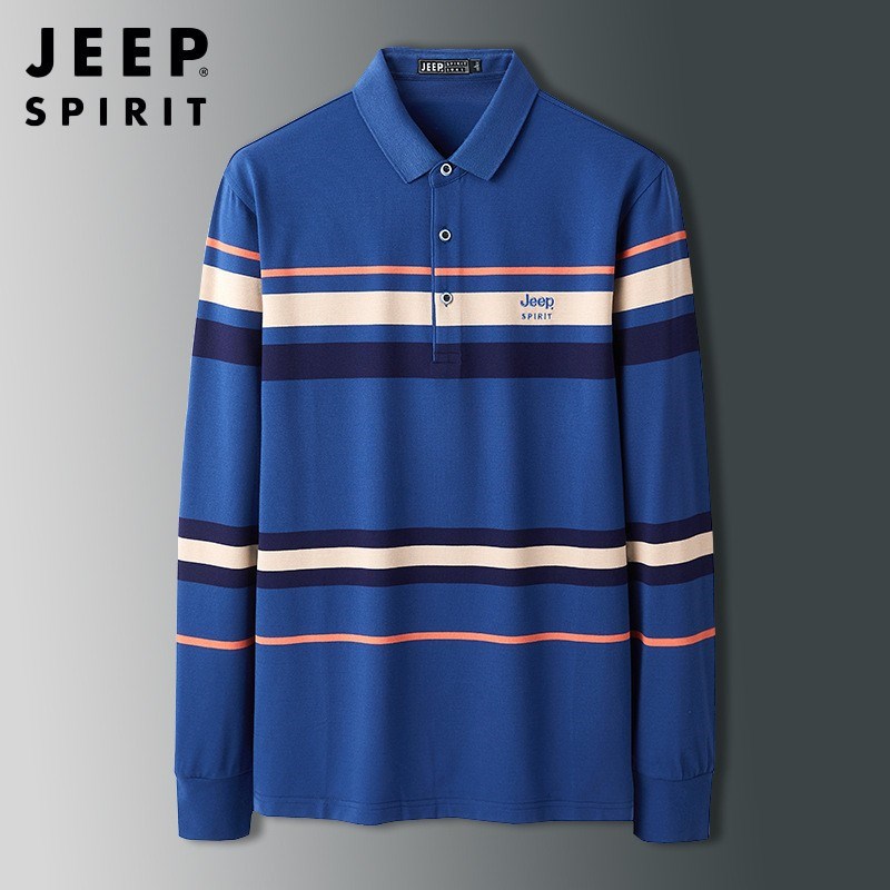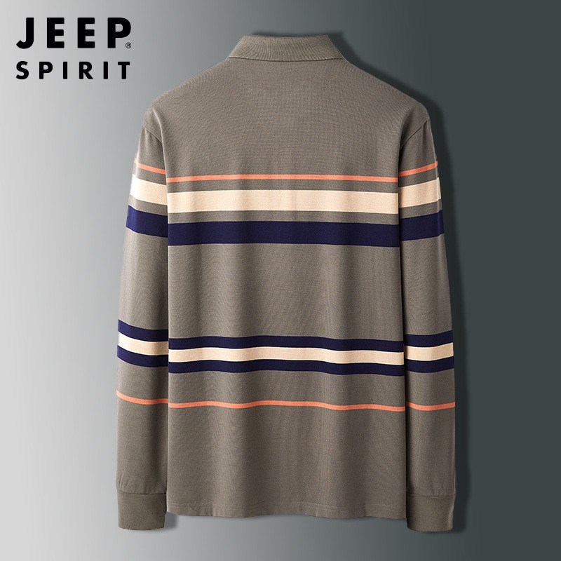 JEEP SPIRIT长袖T恤上衣男青中年秋季休闲T恤男士翻领爸爸装条纹POLO衫HB85T38