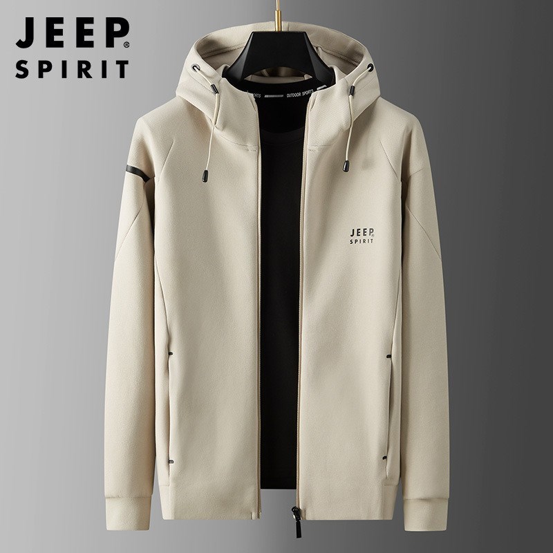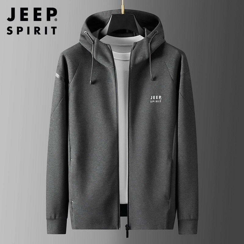 JEEP SPIRIT秋季新款男开衫连帽卫衣休闲简约纯色日常百搭时尚TTT1036