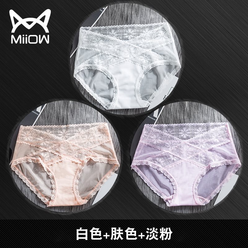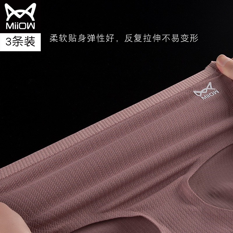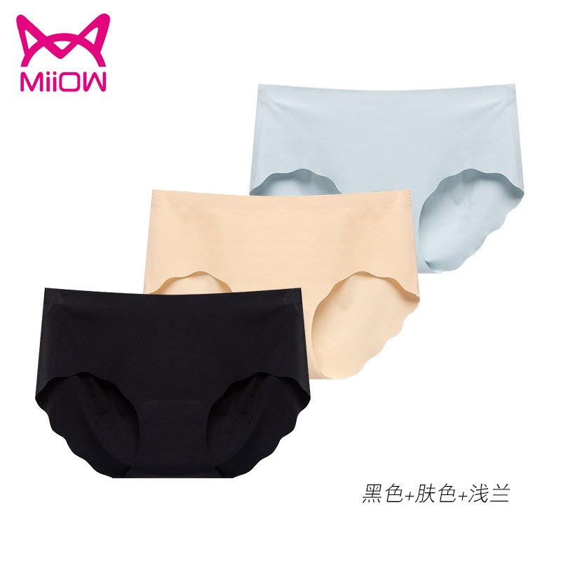 MiiOW/猫人内裤女士性感无痕包臀中腰双层内档三角裤JC996