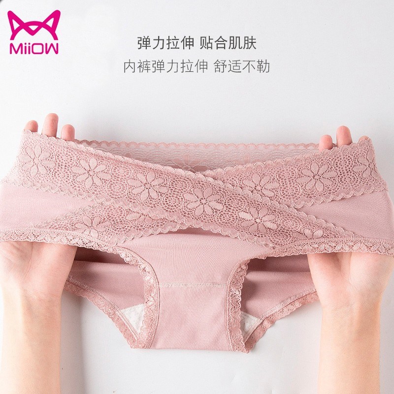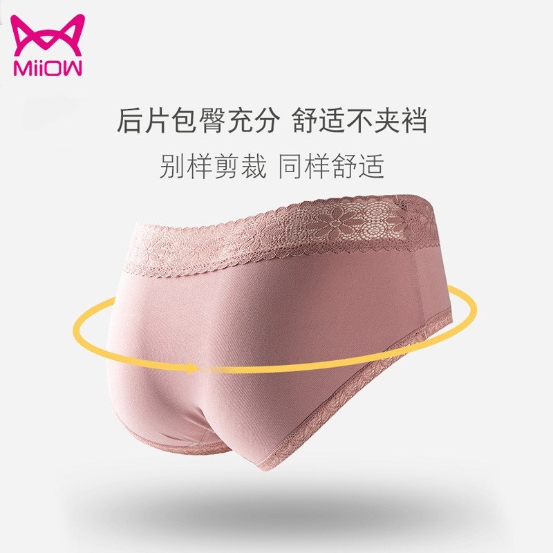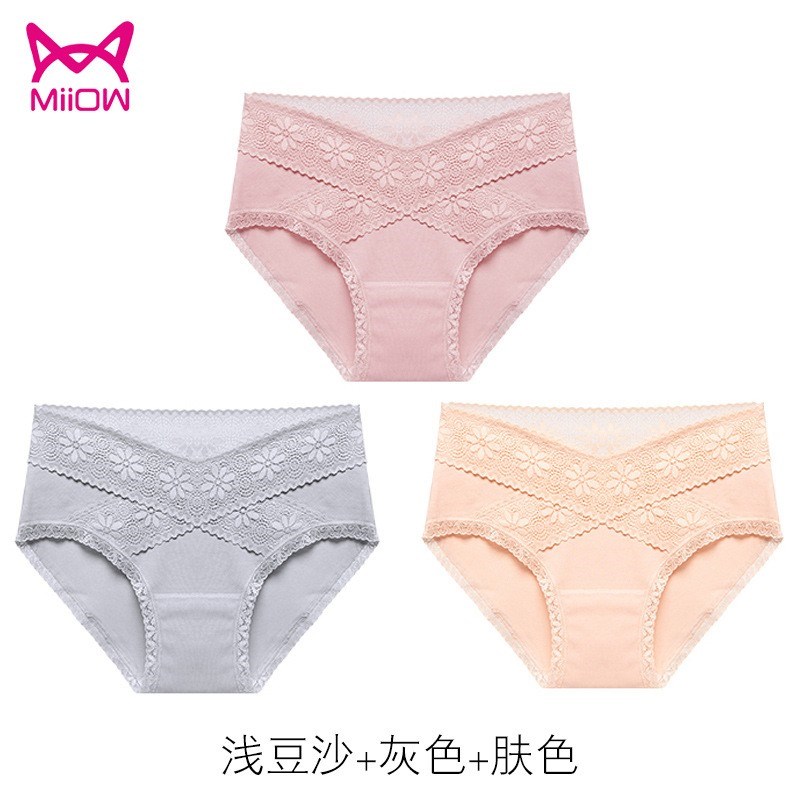 MiiOW/猫人3条装内裤女性感女士三角裤蕾丝棉档女抑菌内裤JC618