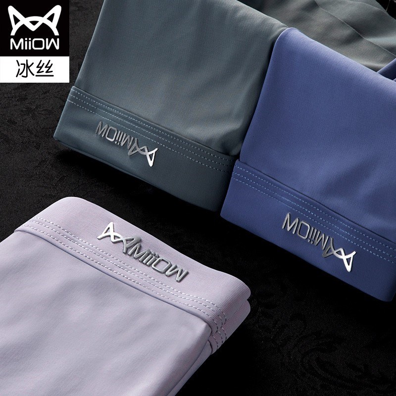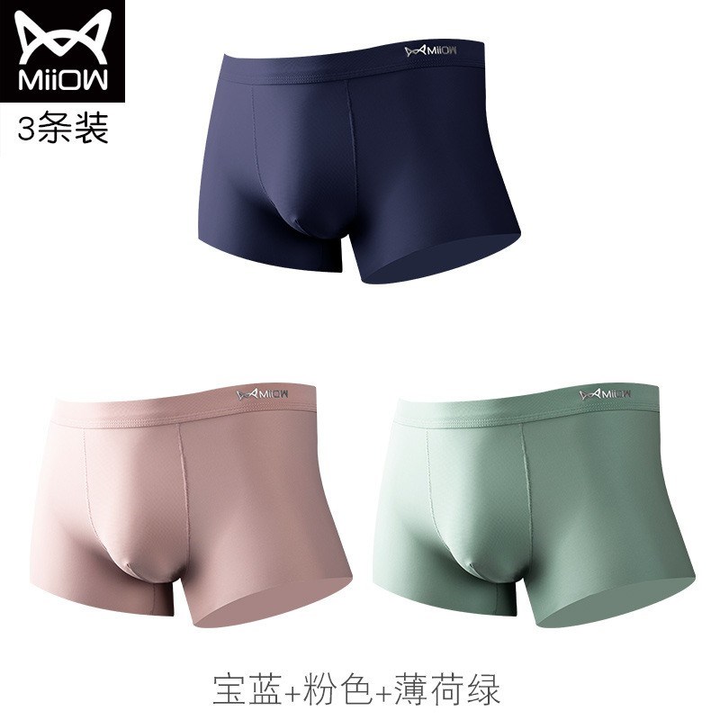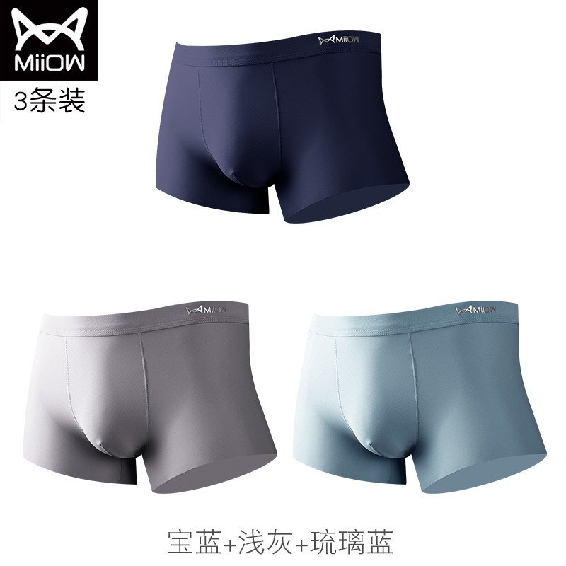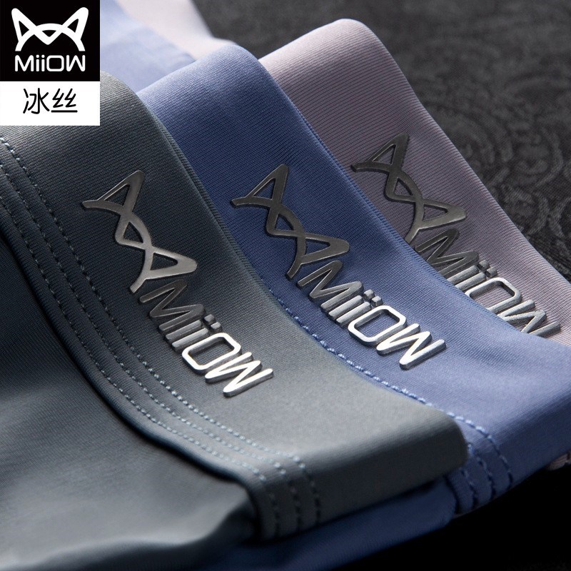MiiOW/猫人3条装男士内裤冰丝透气无痕平角裤纯色JC89689