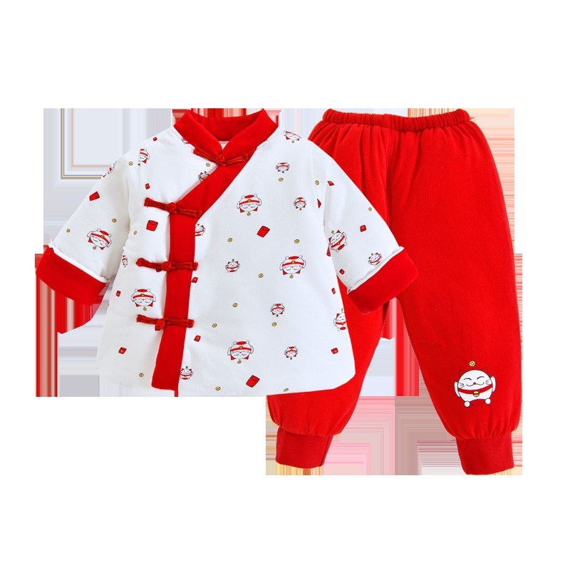 Honeyson纯棉童装儿童冬季加厚套装男女宝宝拜年服中国风唐装A070