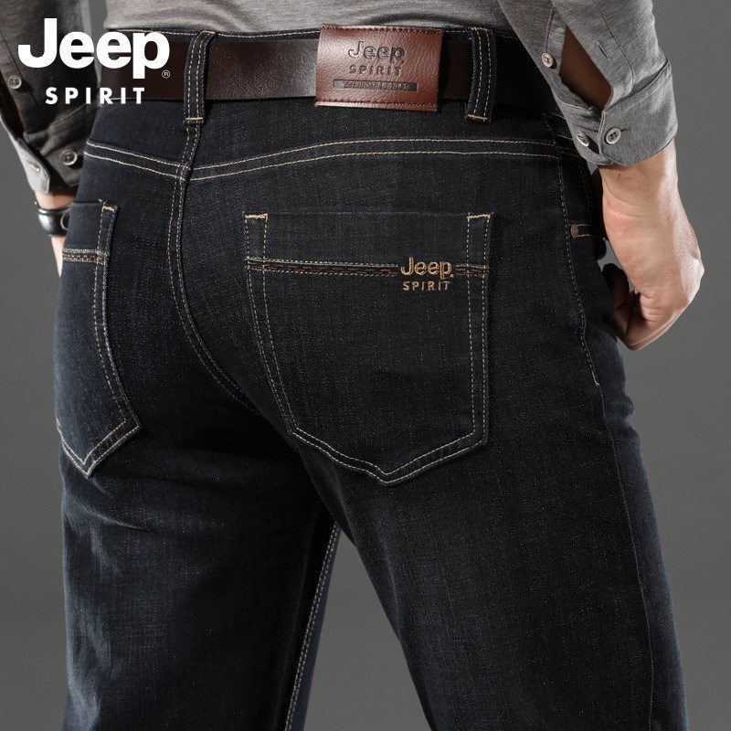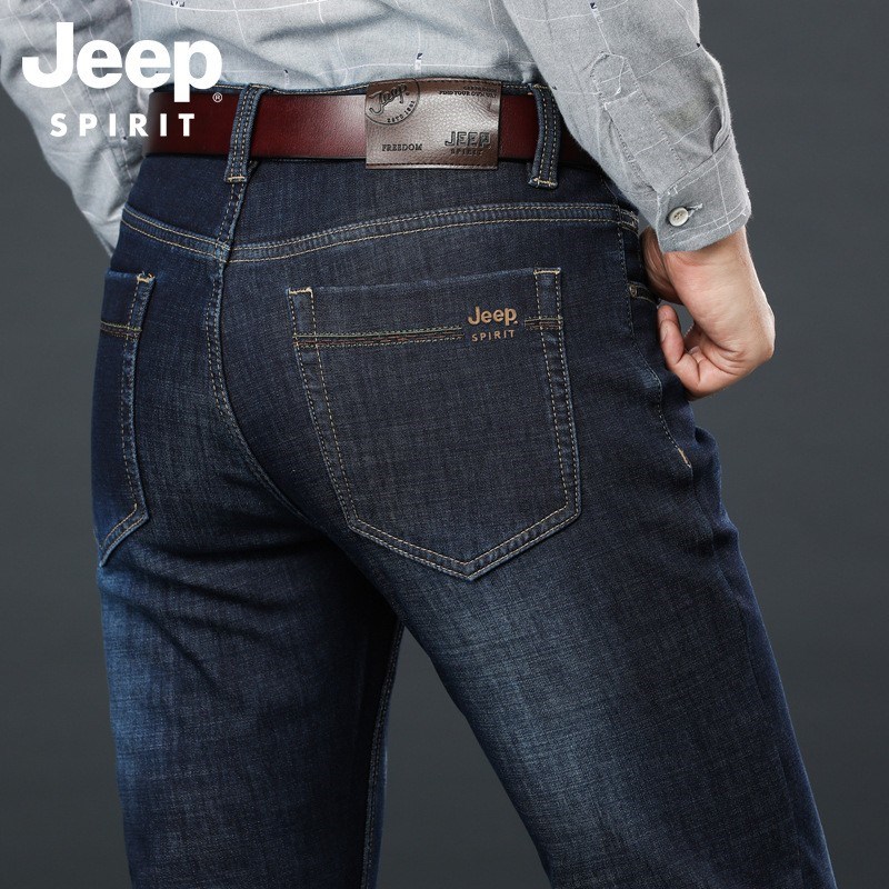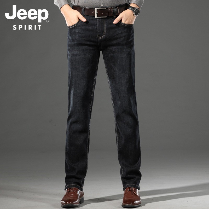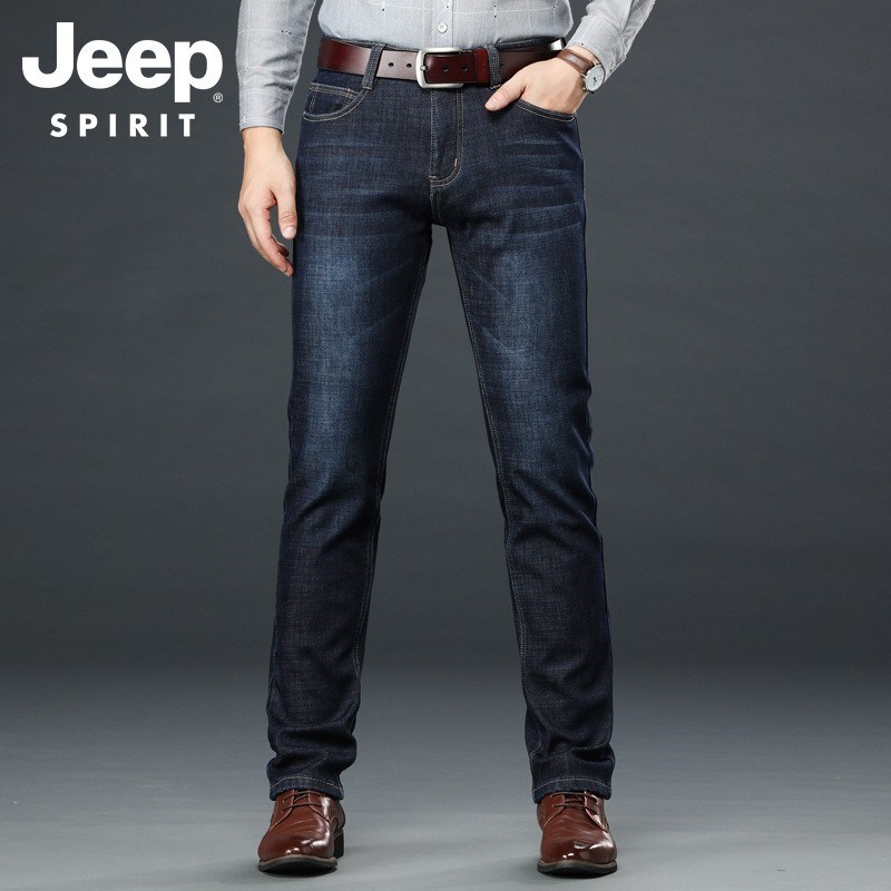 JEEP SPIRIT中年男士牛仔裤弹力秋冬加绒修身直筒中老年爸爸装冬季加厚保暖男J8005E