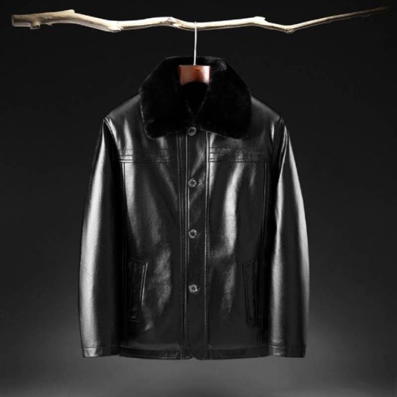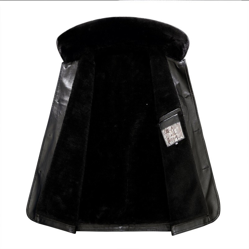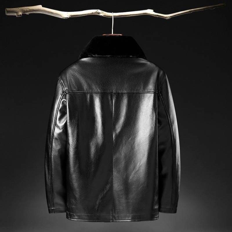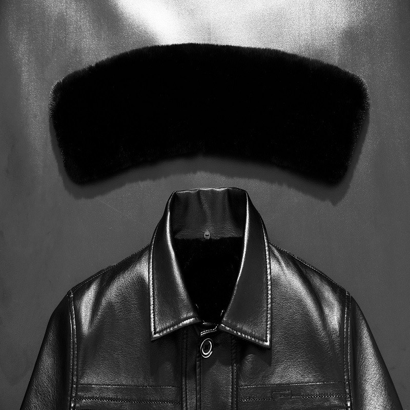 服饰配饰>男装>外套/夹克> 奢苑冬款内胆珊瑚细绒不变型不爆皮仿鹿纹皮衣 黑色 60码 SK-XH