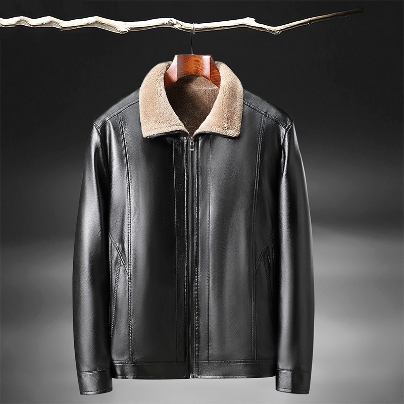 奢苑冬款可翻可立双用领口加厚保暖皮衣 黑色 52码 PL-211