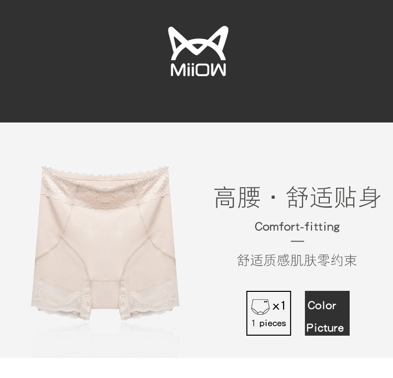 MiiOW/猫人高腰收腹塑身无痕女士内裤女高弹力贴身内裤3条装JC5111