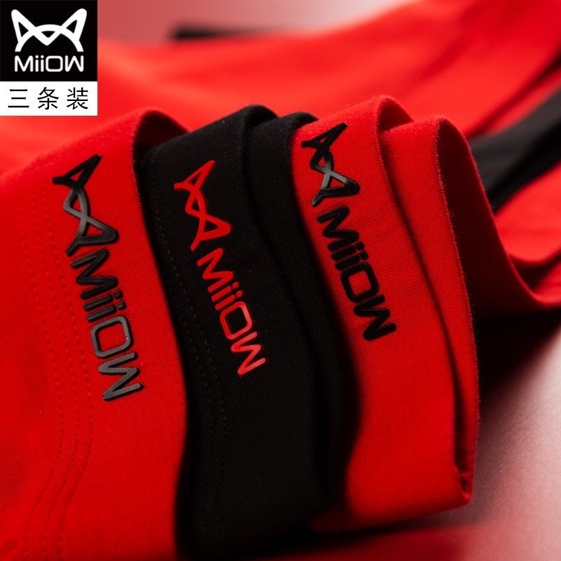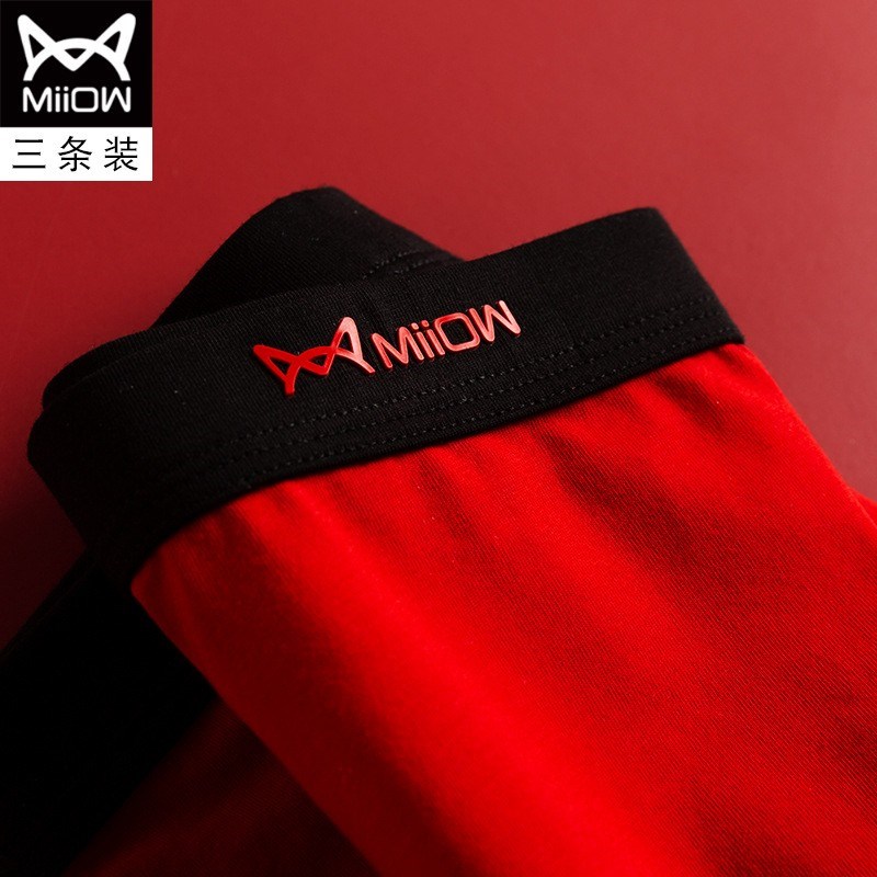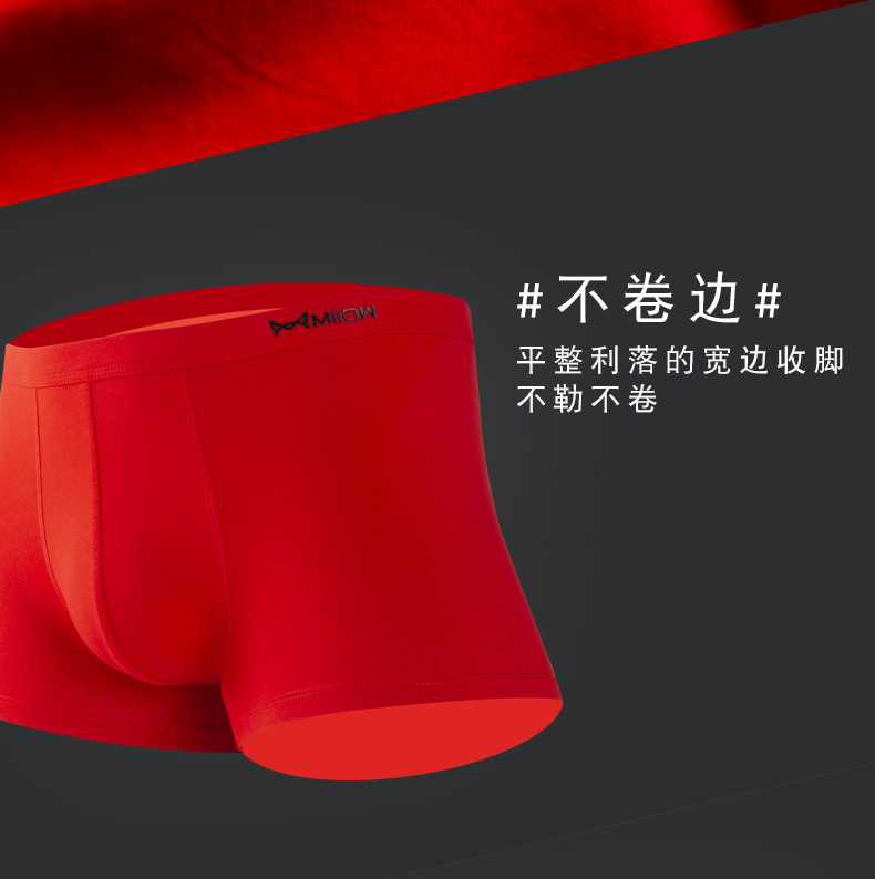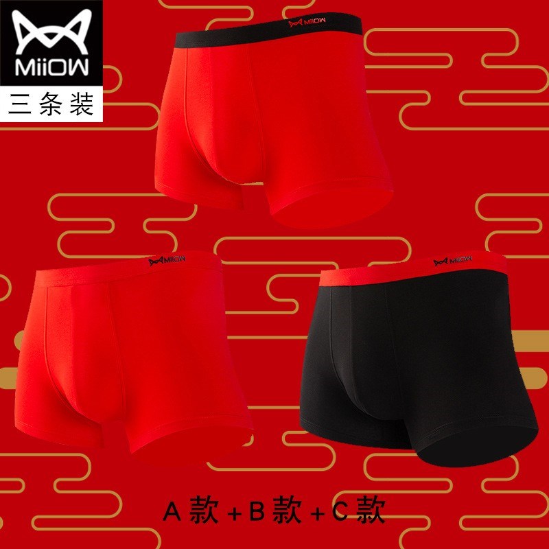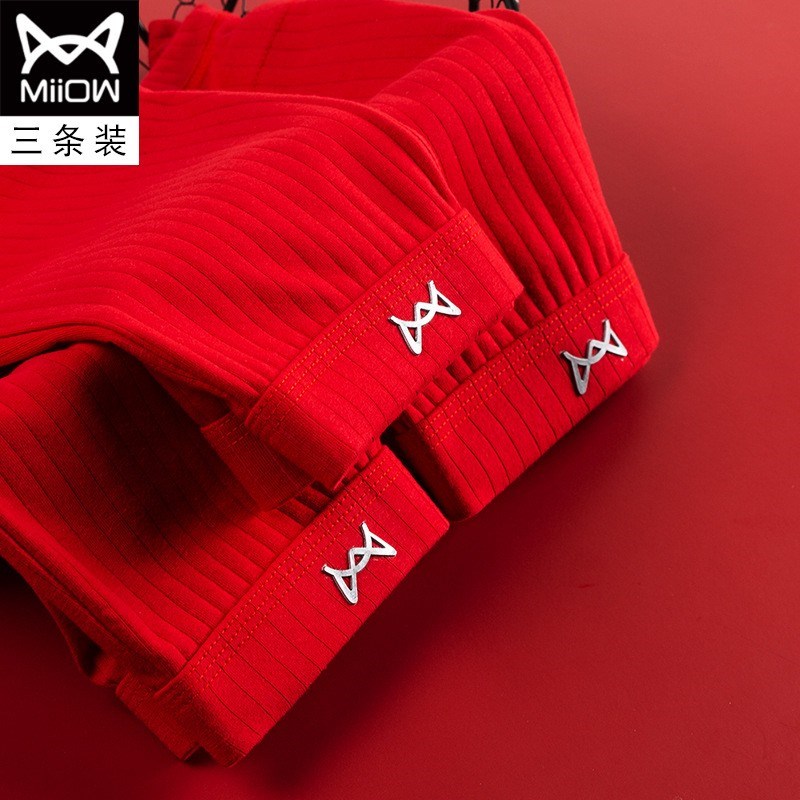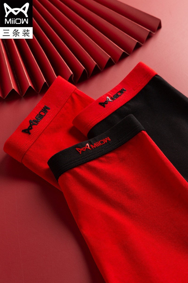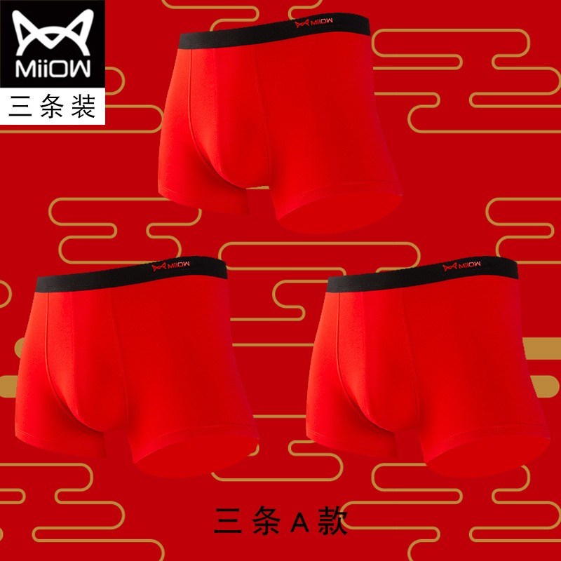 MiiOW/猫人男士内裤男棉质本命年大红色结婚礼物四平角短裤头JC178