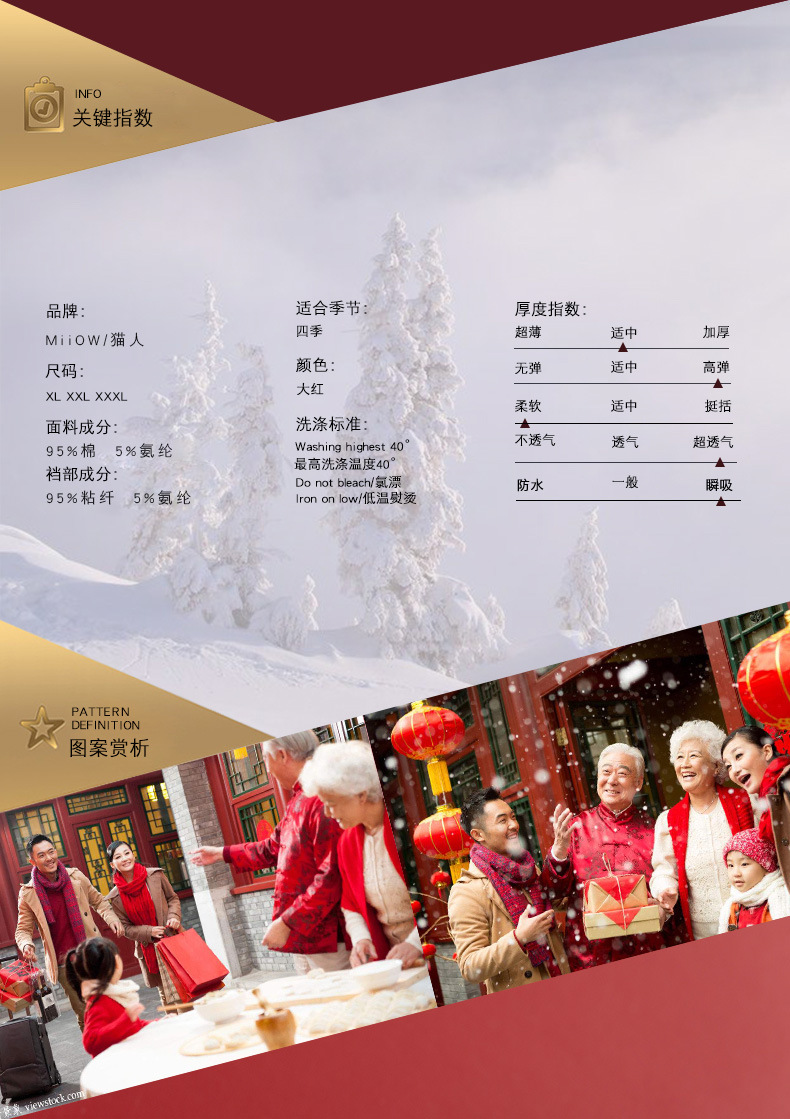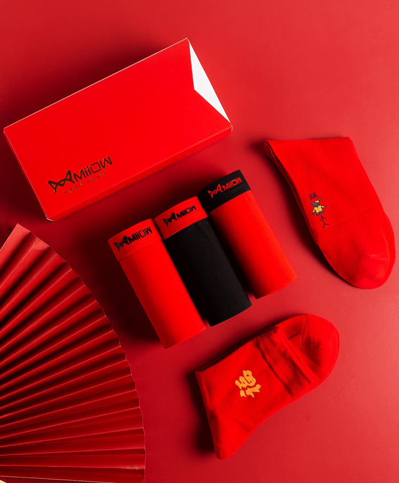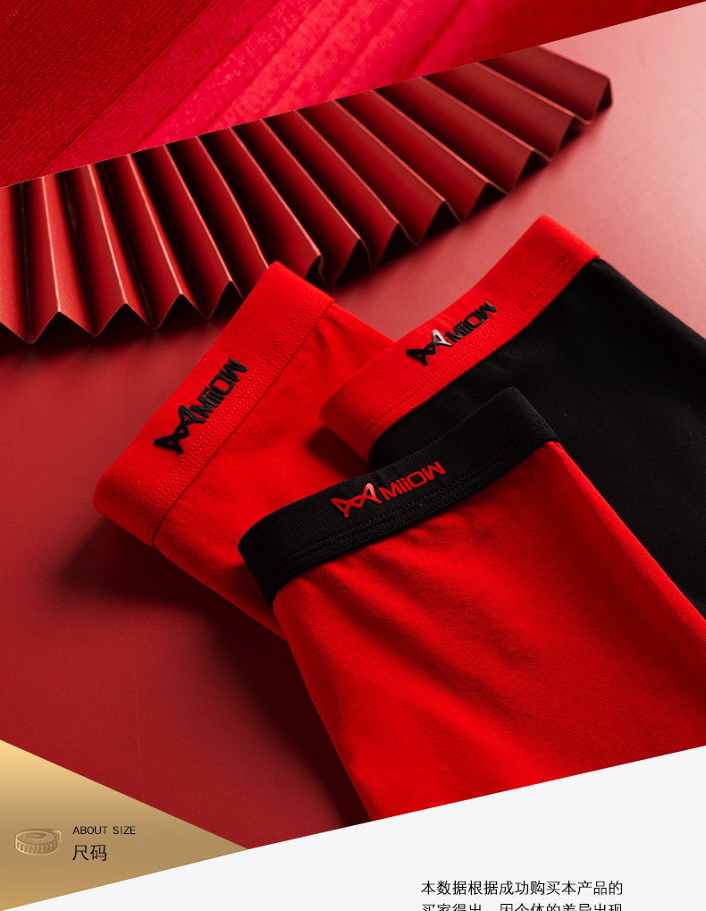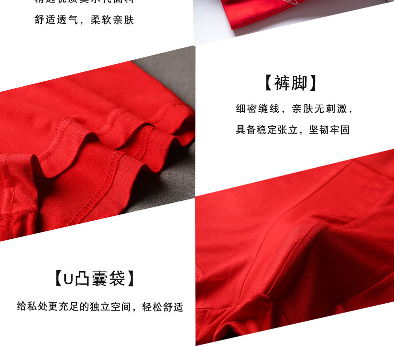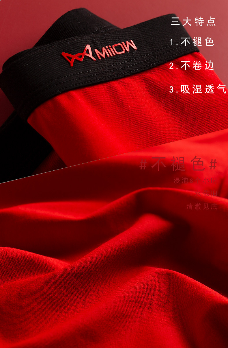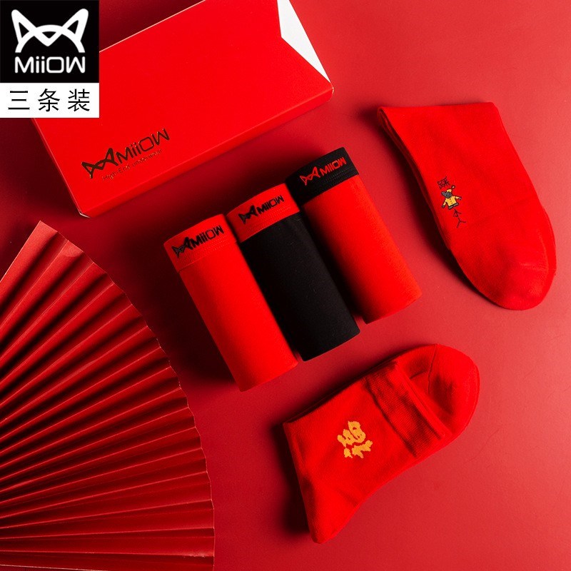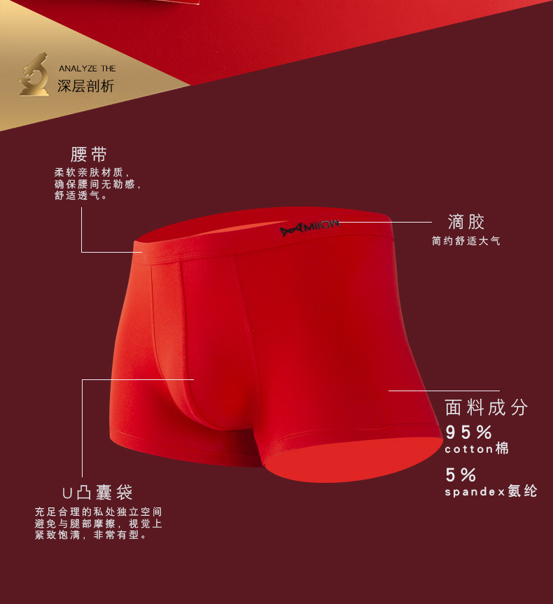 MiiOW/猫人男士内裤男棉质本命年大红色结婚礼物四平角短裤头JC178